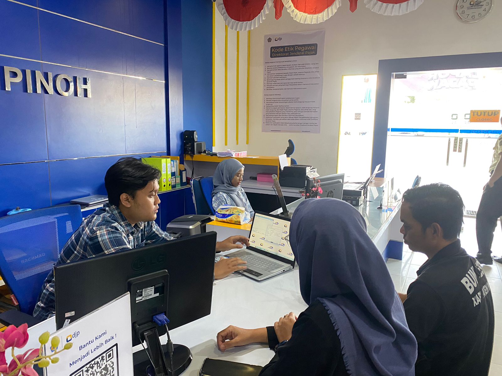 Kantor Pelayanan, Penyuluhan, dan Konsultasi Perpajakan (KP2KP) Nanga Pinoh melakukan asistensi pembuatan faktur pajak bersama salah seorang wajib pajak di ruang tempat pelayanan terpadu (TPT) KP2KP Nanga Pinoh (Kamis, 25/07).