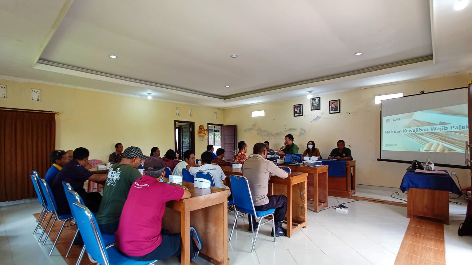 Tim Penyuluh Kantor Pelayanan Pajak (KPP) Tabanan menghadiri undangan sosialisasi dari Desa Marga Dajan Puri bertempat di Kantor Perbekel Desa Marga Dajan Puri, Marga, Tabanan, Bali (Selasa, 6/12). Sosialisasi ini dilakukan guna menjelaskan terkait hak dan kewajiban yang harus dipenuhi oleh wajib pajak.