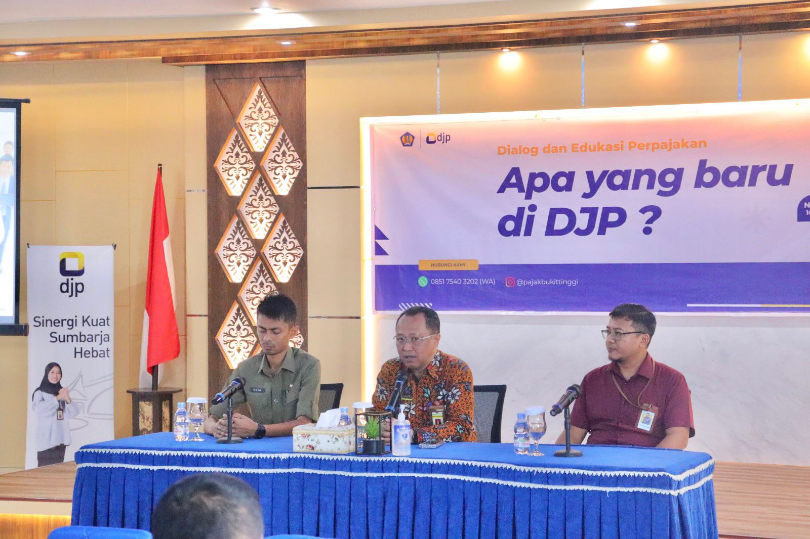 Kantor Pelayanan Pajak (KPP) Pratama Bukittinggi mengadakan acara Dialog dan Edukasi Perpajakan kepada Perangkat Daerah Kota Padang Panjang terkait Peraturan Pemerintah (PP) Nomor 58 Tahun 2023 tentang Tarif Pemotongan Pajak Penghasilan Pasal 21 atas Penghasilan Sehubungan dengan Pekerjaan, Jasa, atau Kegiatan Wajib Pajak Orang Pribadi yang bertempat di Aula KPP Pratama Bukittinggi (Kamis, 1/2).