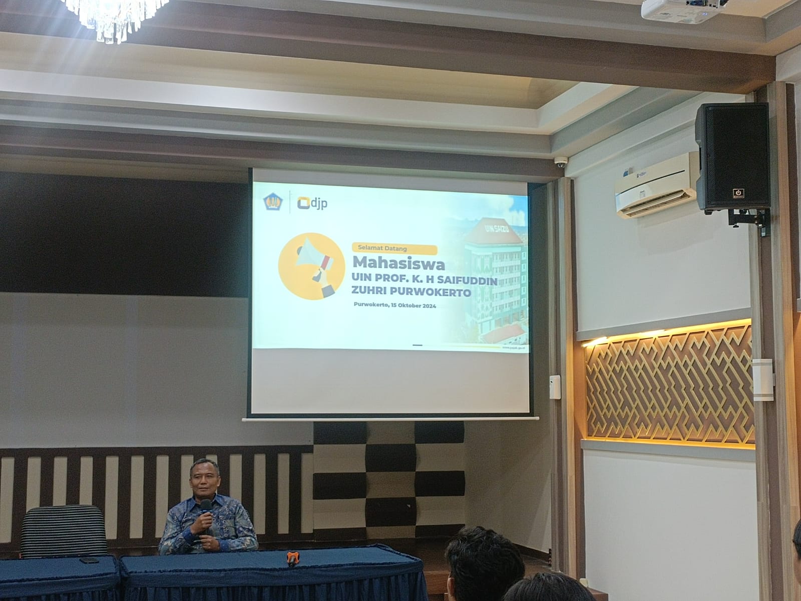 Puluhan mahasiswa yang tergabung dalam Komunitas Studi Ekonomi Islam (KSEI) Fakultas Ekonomi dan Bisnis Islam (FEBI) Universitas Islam Negeri Saifuddin Zuhri (UIN SAIZU) Purwokerto melakukan kunjungan institusi finansial di Kantor Pelayanan Pajak (KPP) Pratama Purwokerto, Purwokerto Timur, Banyumas (Selasa, 15/10).