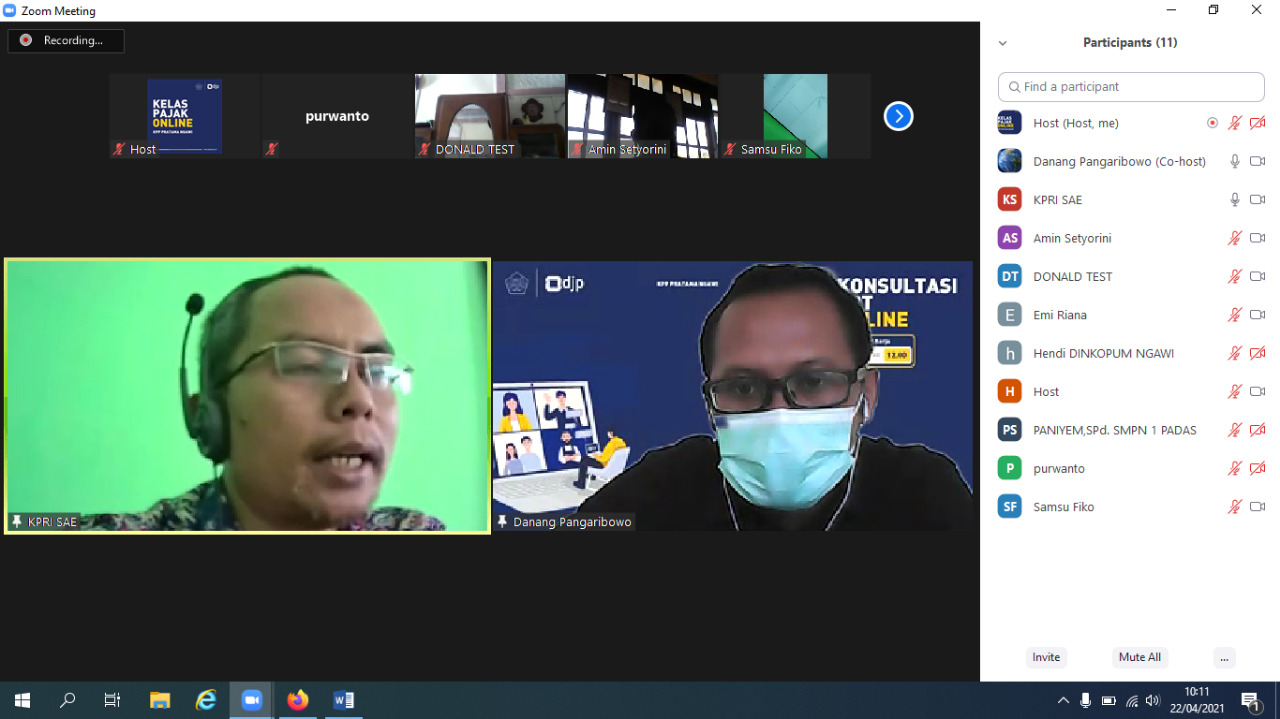 Fungsional Penyuluh Pajak KPP Pratama Ngawi mengadakan sosialisasi secara online pengisian SPT Tahunan 1771 khusus koperasi dari ruang kelas pajak KPP Pratama Ngawi (Kamis 22/4). Ini merupakan kali pertama Fungsional Penyuluh Pajak menjalankan sosialisasi. Kegiatan ini dilaksanakan sebagai upaya memberikan pelayanan kepada wajib pajak terutama wajib pajak badan yang belum melaporkan SPT Tahunan, mengingat batas waktu penyampaian tinggal berapa hari lagi.
