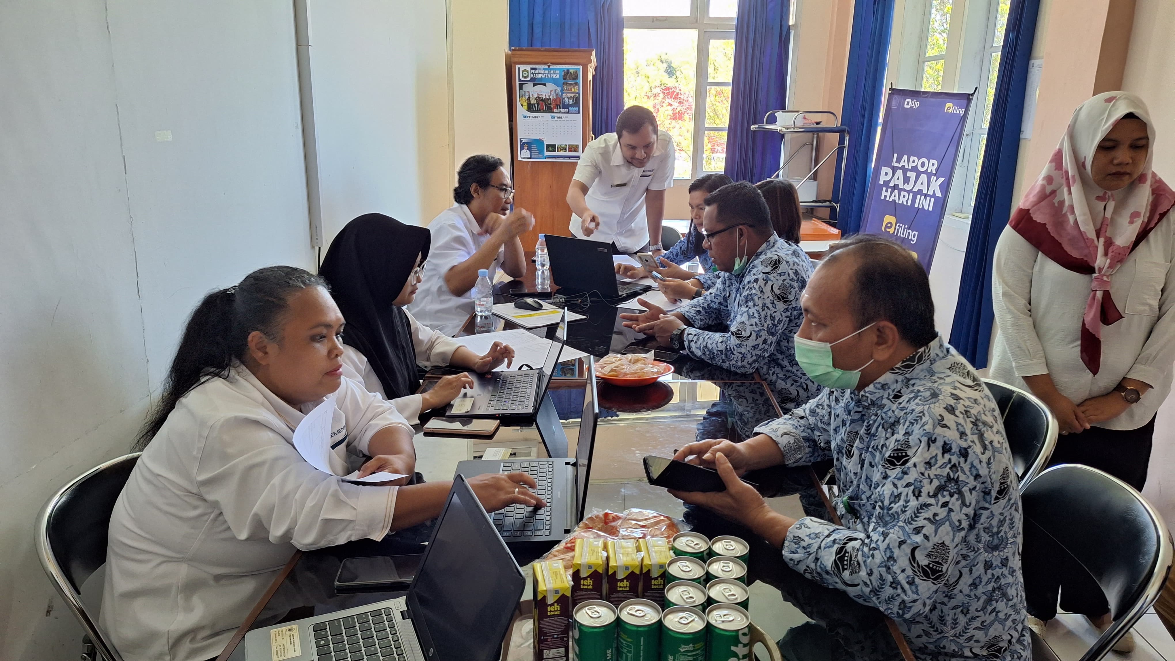 Kantor Pelayanan, Penyuluhan, dan Konsultasi Perpajakan (KP2KP) Bungku menginisiasi pendampingan pelaporan Surat Pemberitahuan (SPT) Tahunan bagi tenaga kesehatan di Rumah Sakit Umum Daerah (RSUD) Kabupaten Poso, Sulawesi Tengah (Senin, 19/2). Aktivitas ini turut mengajak Tim Satuan Tugas Penerimaan SPT Tahunan Kantor Pelayanan Pajak (KPP) Pratama Poso. Pendampingan dilaksanakan di Ruang Rapat RSUD Poso mulai pukul 09.00 s.d. 16.00 WITA dengan dihadiri oleh 64 para pekerja di RSUD Kabupaten Poso secara bergantian.
