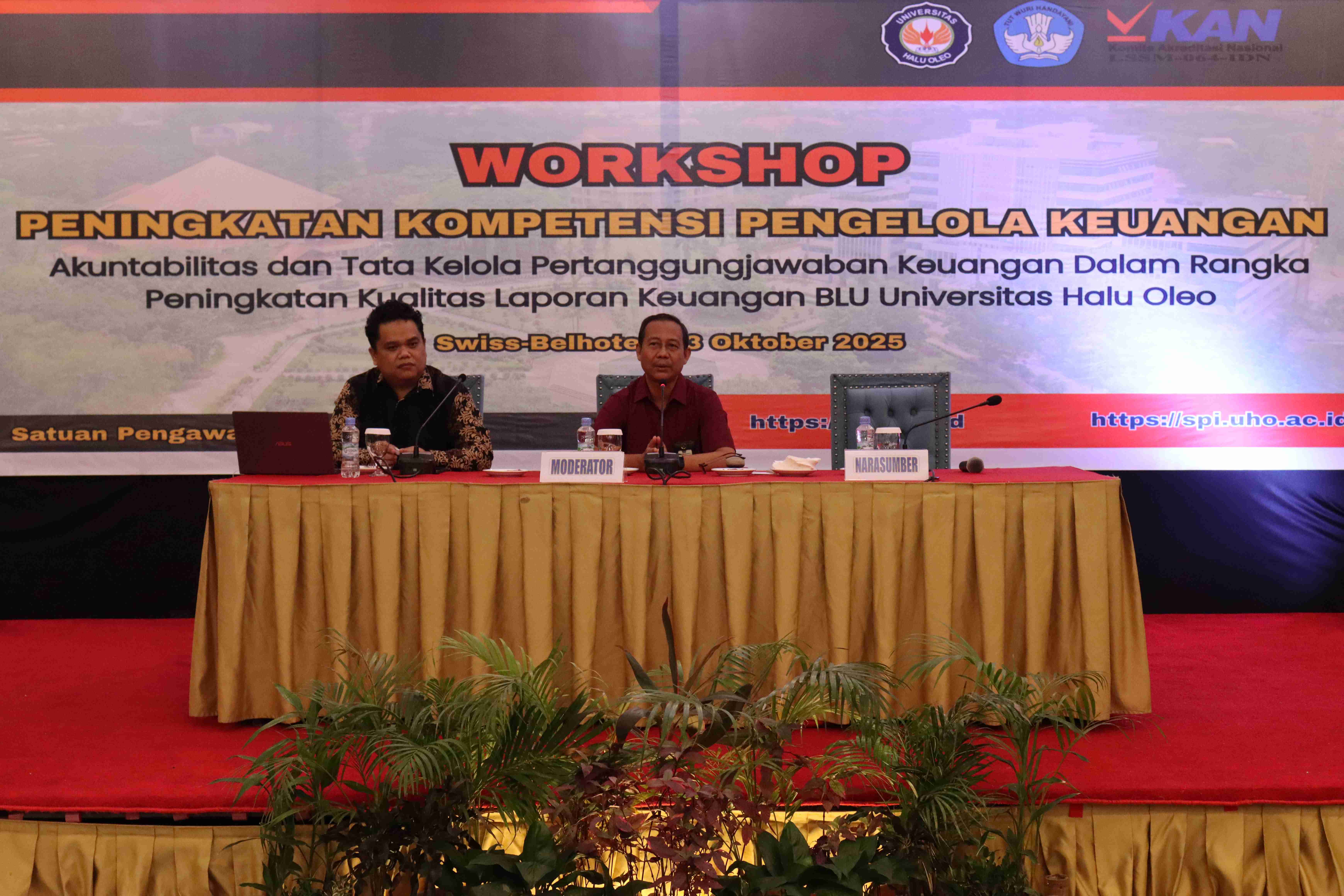 Universitas Halu Oleo (UHO) bekerja sama dengan Kantor Pelayanan Pajak (KPP) Pratama Kendari menggelar Workshop Peningkatan Kompetensi Pengelola Keuangan bertema Akuntabilitas dan Tata Kelola Pertanggungjawaban Keuangan dalam Rangka Peningkatan Kualitas Laporan Keuangan BLU Universitas Halu Oleo di Swiss-Belhotel, Kota Kendari (Jumat, 24/10).