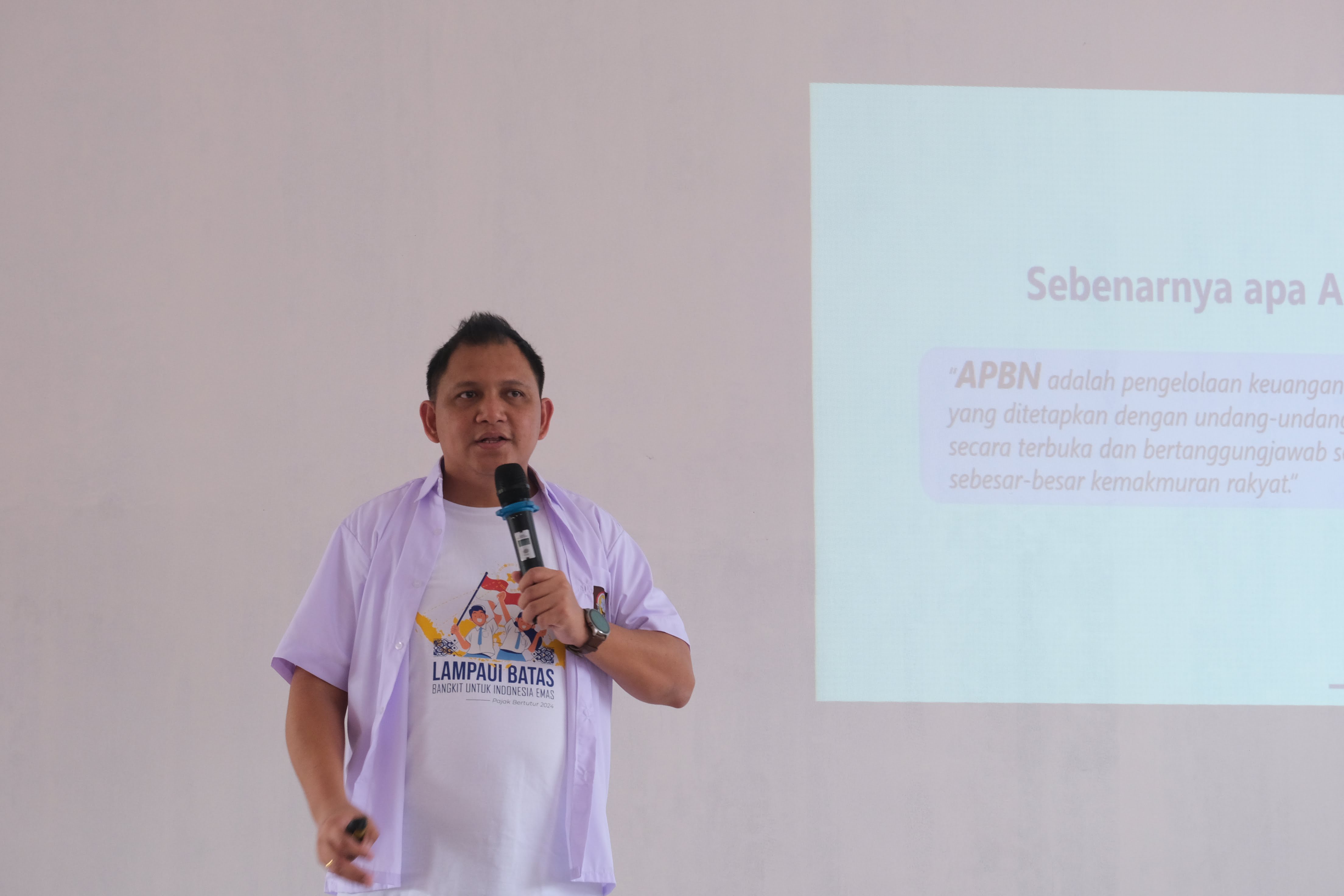 Materi pertama disampaikan oleh Penyuluh Pajak Bakri Tangnga yang memaparkan tentang peran yang dapat dilakukan siswa dalam mendukung Indonesia Emas 2045. Bakri juga menjelaskan bagaimana peran aktif siswa, sebagai generasi penerus bangsa dapat berkontribusi dalam pembangunan negara di masa depan. Penyuluh Pajak Heince Pangalila lalu melanjutkan sesi dengan menjelaskan mengenai Anggaran Pendapatan dan Belanja Negara (APBN) dan bagaimana pajak berperan dalam perekonomian negara. Materi terakhir disampaikan oleh Penyuluh Pajak Rahmania yang mengulas tentang apa itu pajak, manfaatnya, serta peran siswa dalam perpajakan.