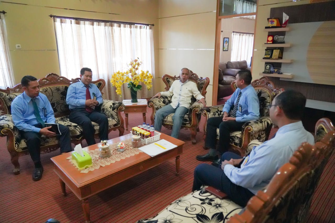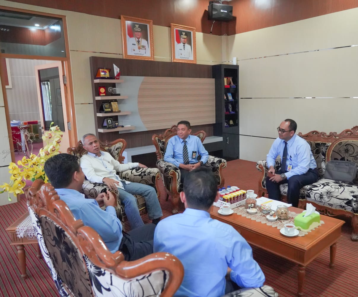 Kepala KPP Pratama Maros Sulistyo Nugroho berdiskusi dengan Wakil Bupati Pangkep dan Kepala BPKD Kabupaten Pangkep guna membangun sinergi dalam rangka pengamanan penerimaan pajak jelang akhir tahun.