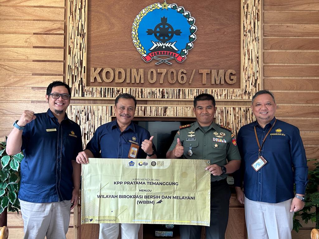 Kantor Pelayanan Pajak (KPP) Pratama Temanggung melakukan kunjungan kerja ke Komando Distrik Militer (Kodim) 0706 di Jl. Pangeran Diponegoro No.39 Temanggung , Kabupaten Temanggung (Rabu, 11/10). Kunjungan ini dipimpin langsung oleh Kepala KPP Pratama Temanggung Christijanto Wahju Purwoistijoko. Komandan Kodim Letkol Inf Sriyono S.I.P menyambut kedatangan rombongan KPP.
