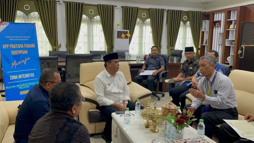 Kepala Kantor Pelayanan Pajak (KPP) Pratama Padang Sidempuan Budiman Napitupulu bersama dengan Kepala Seksi Pengawasan IV Andry Surya Dinata dan tim melakukan kunjungan kerja ke Kantor Bupati Mandailing Natal, Kabupaten Mandailing Natal, Sumatera Utara (Kamis, 2/2).