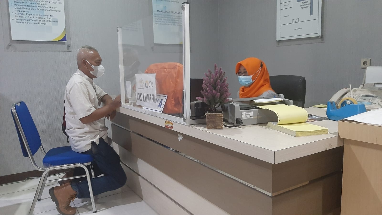 Kantor Pelayanan Penyuluhan dan Konsultasi Perpajakan (KP2KP) Kendal bekerja sama dengan Kantor Pos Kendal memberikan layanan pajak bagi wajib pajak yang ingin melaksanakan kewajiban pembayaran pajaknya (Senin, 26/9).