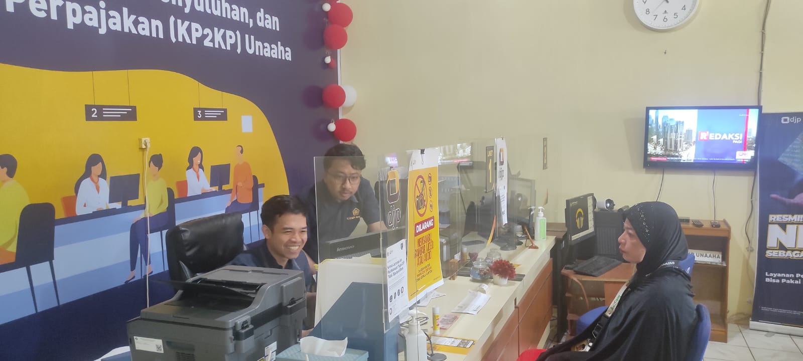 Kantor Pelayanan, Penyuluhan, dan Konsultasi Perpajakan (KP2KP) Unaaha menerima lawatan seorang Wajib Pajak Orang Pribadi yang beralamat di Kecamatan Lambuya, Kabupaten Konawe. Kedatangan Ibu ini disambut oleh petugas KP2KP Unaaha Fahrul di Tempat Pelayanan Terpadu (TPT) KP2KP Unaaha, Kab. Konawe (Rabu, 16/10).