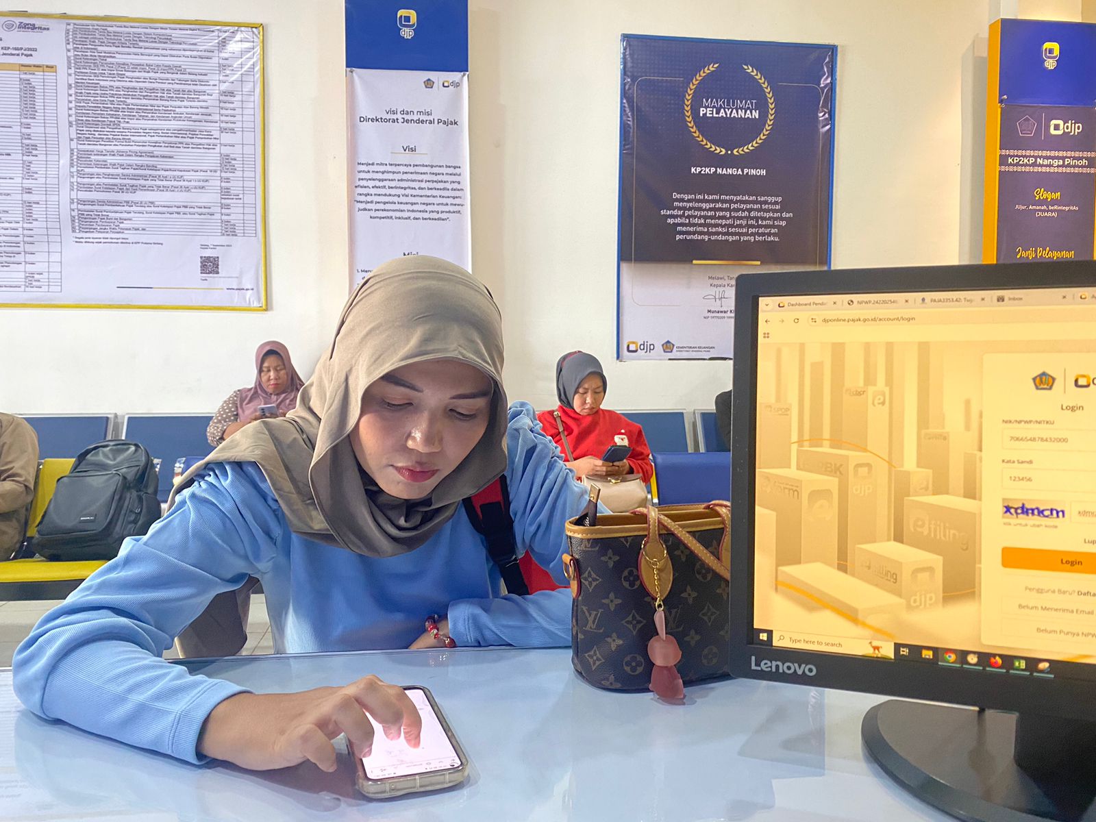 Kantor Pelayanan, Penyuluhan, dan Konsultasi Perpajakan (KP2KP) Nanga Pinoh memberikan layanan konsultasi kepada salah satu Wajib Pajak Orang Pribadi terkait pelaporan Surat Pemberitahuan (SPT) Tahunan di Tempat Pelayanan Terpadu (TPT) KP2KP Nanga Pinoh, Kabupaten Melawi (Selasa, 11/12). Kegiatan konsultasi dipandu oleh Petugas Penyuluh KP2KP Nanga Pinoh Iqbal Pasuja.