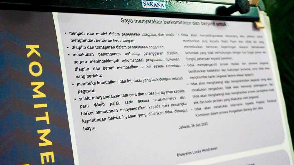Kantor Wilayah (Kanwil) DJP Jakarta Selatan I selenggarakan penandatanganan Komitmen Integritas Pimpinan (KIP) di aula lantai 20 gedung Mangkuluhur City Tower One, Jakarta Selatan (Selasa, 29/7).