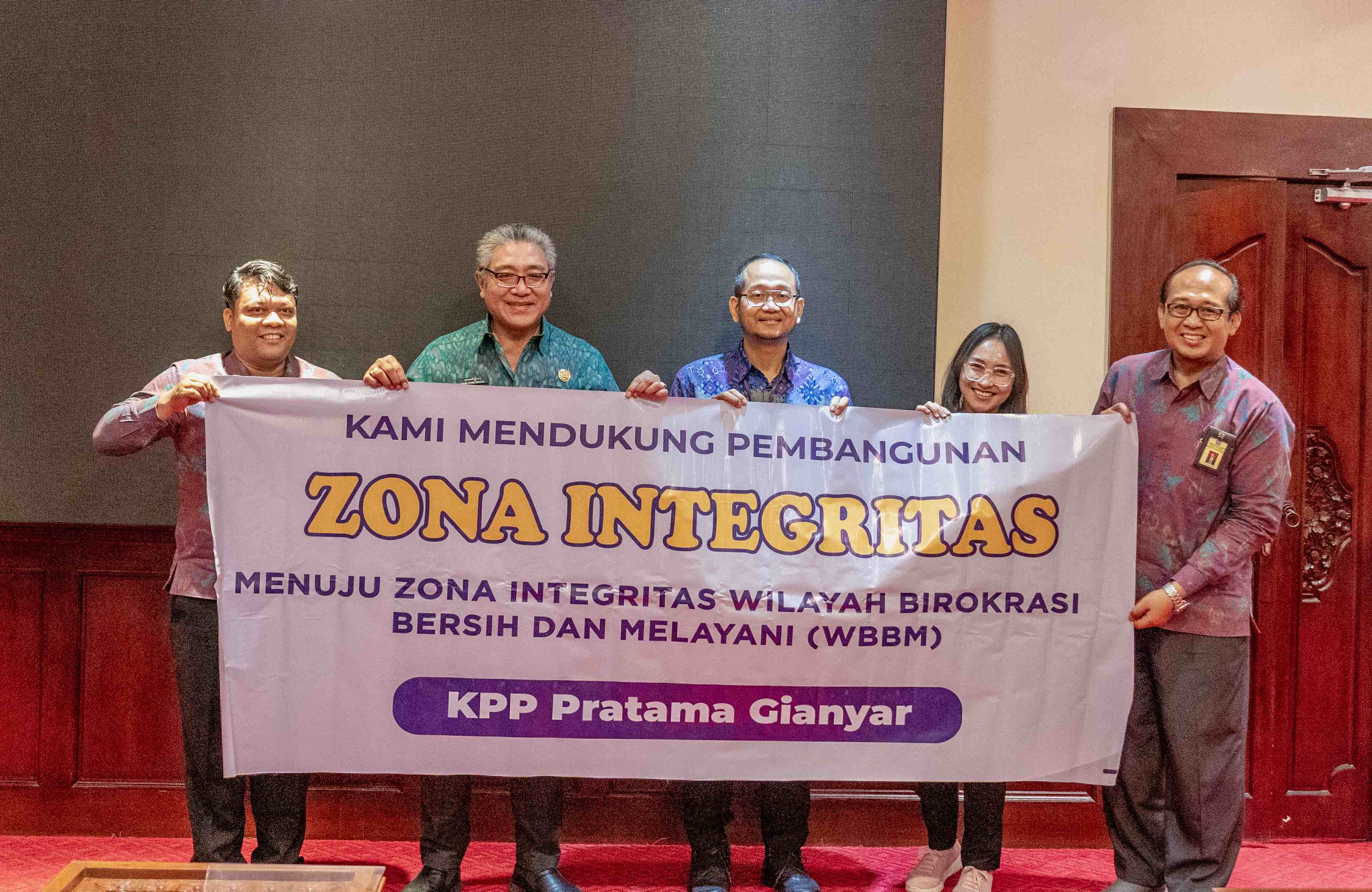 Pj. Bupati Gianyar I Dewa Tagel Wirasa memberikan dukungan kepada Kantor Pelayanan Pajak (KPP) Pratama Gianyar dalam meraih predikat Zona Integritas Menuju Wilayah Birokrasi Bersih dan Melayani atau ZIWBBM di Kantor Bupati Gianyar (Selasa, 2/5).