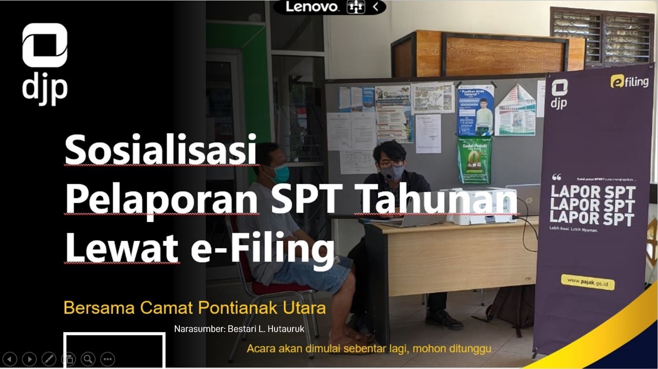 Selain layanan Pojok Pajak, KPP Pratama Pontianak Timur nantinya juga akan mengadakan sosialisasi pelaporan spt tahunan secara daring melalui zoom meeting. Rencananya acara sosialisasi akan dihadiri Camat Pontianak Utara dan 10 perwakilan masing-masing kelurahan yang ada di Kecamatan Pontianak Utara.