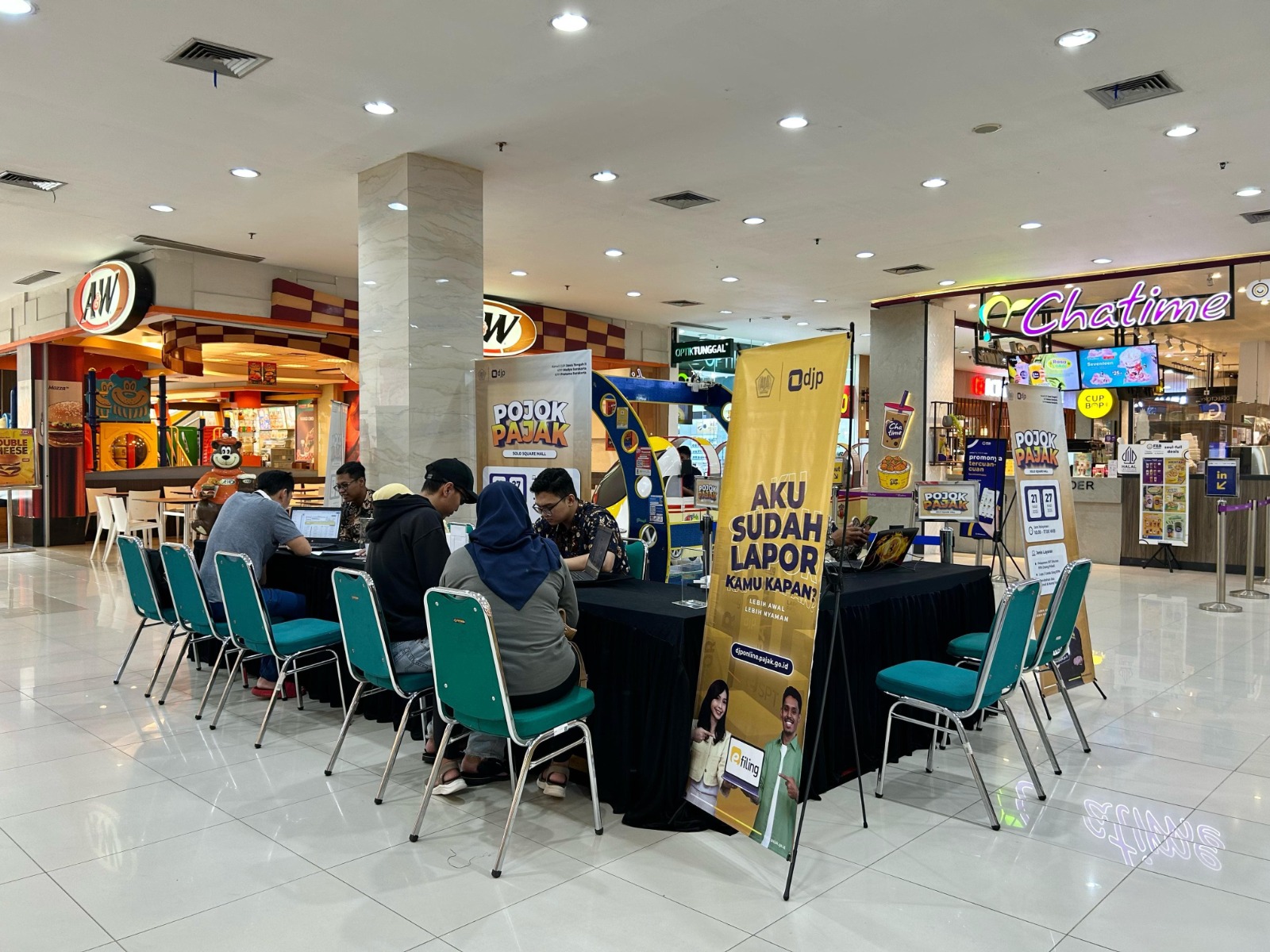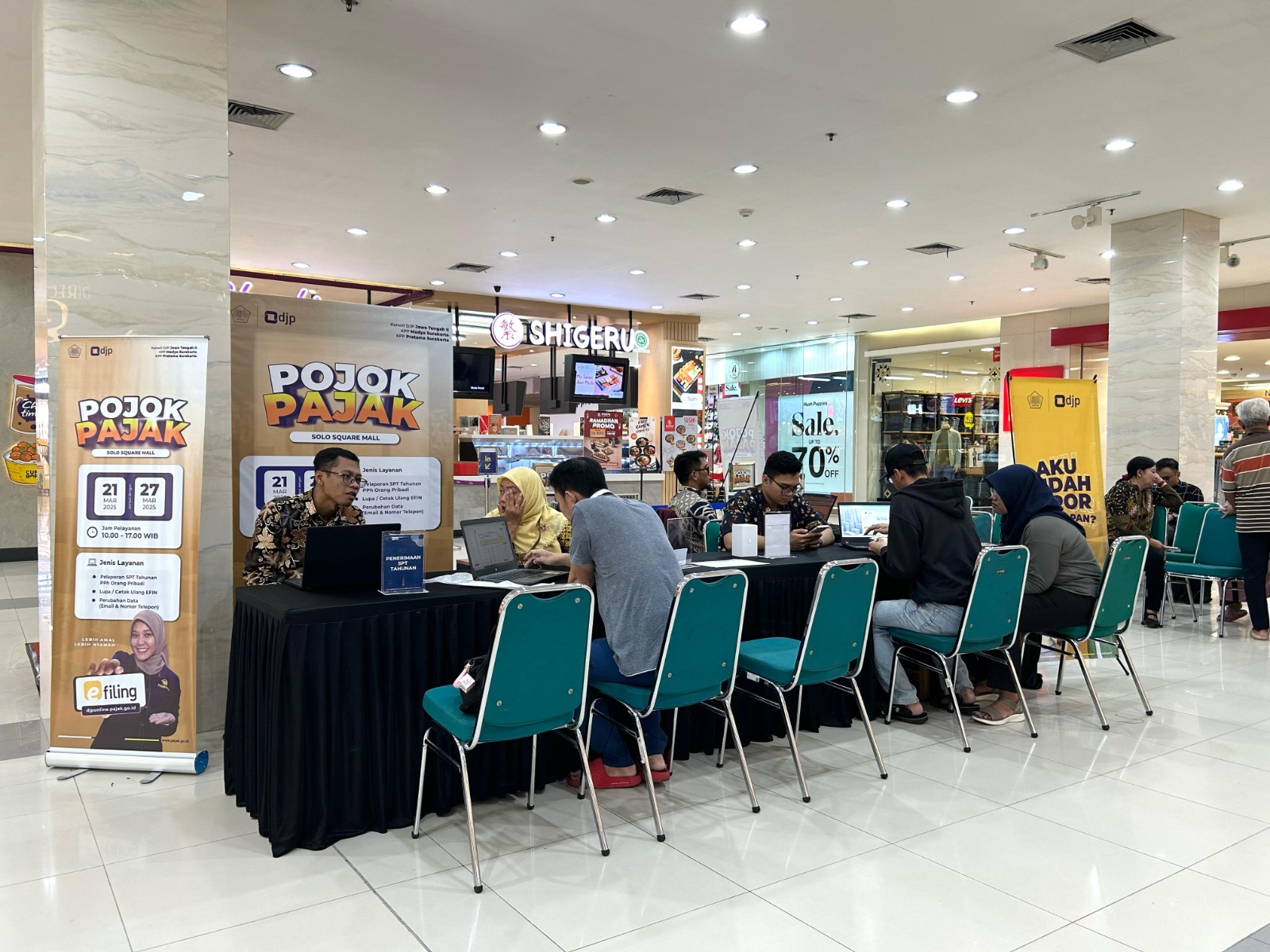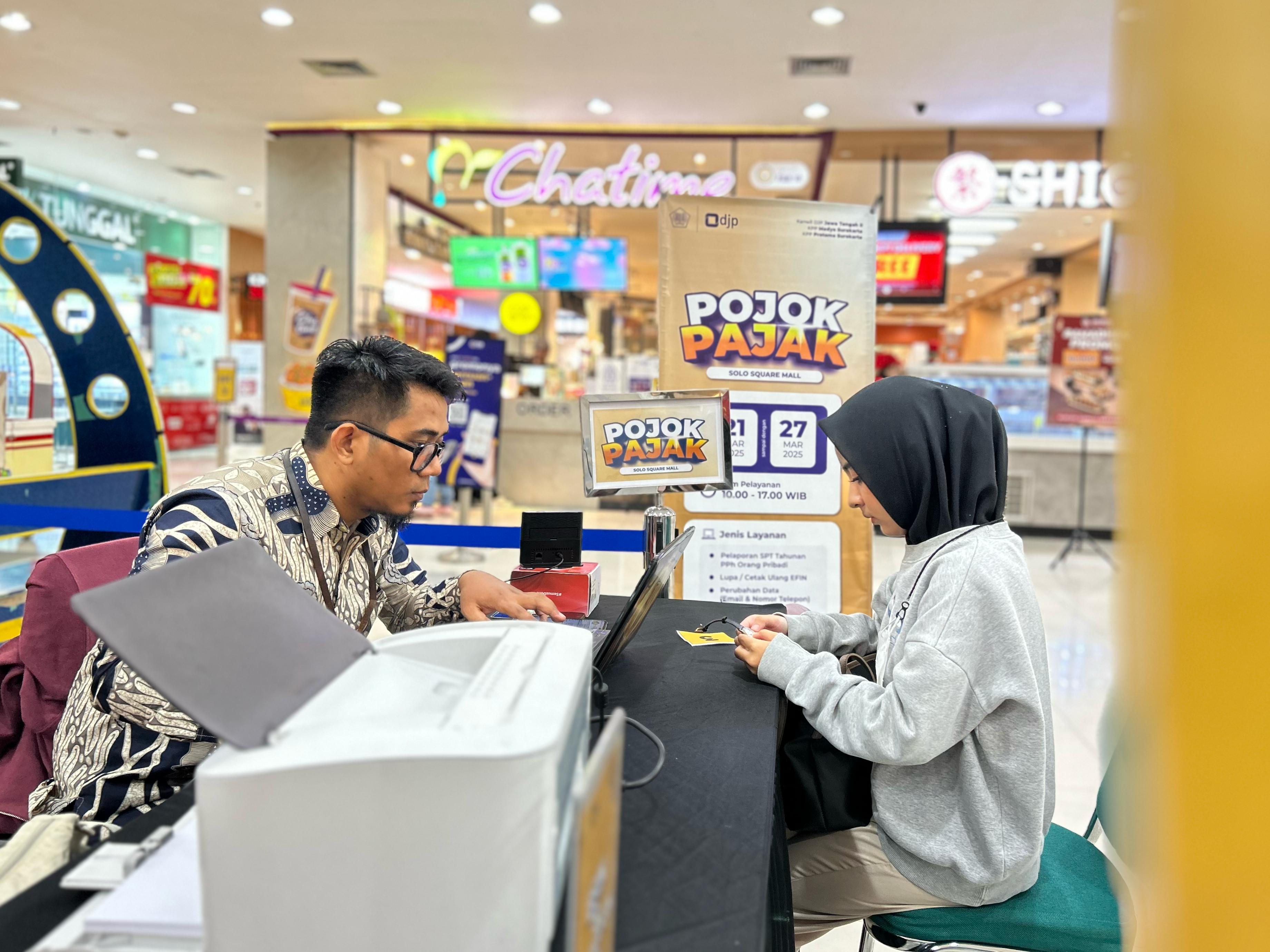 Kantor Pelayanan Pajak (KPP) Pratama Surakarta bersama Kantor Wilayah Direktorat Jenderal Pajak (Kanwil DJP) Jawa Tengah II dan KPP Madya Surakarta menggelar kegiatan Pojok Pajak di Solo Square Mall (Jumat, 21/3). Layanan ini diselenggarakan selama 7 hari sampai tanggal 27 Maret 2025, setiap hari pukul 10.00 hingga 17.00 WIB di Area Ground Floor Solo Square Mall.