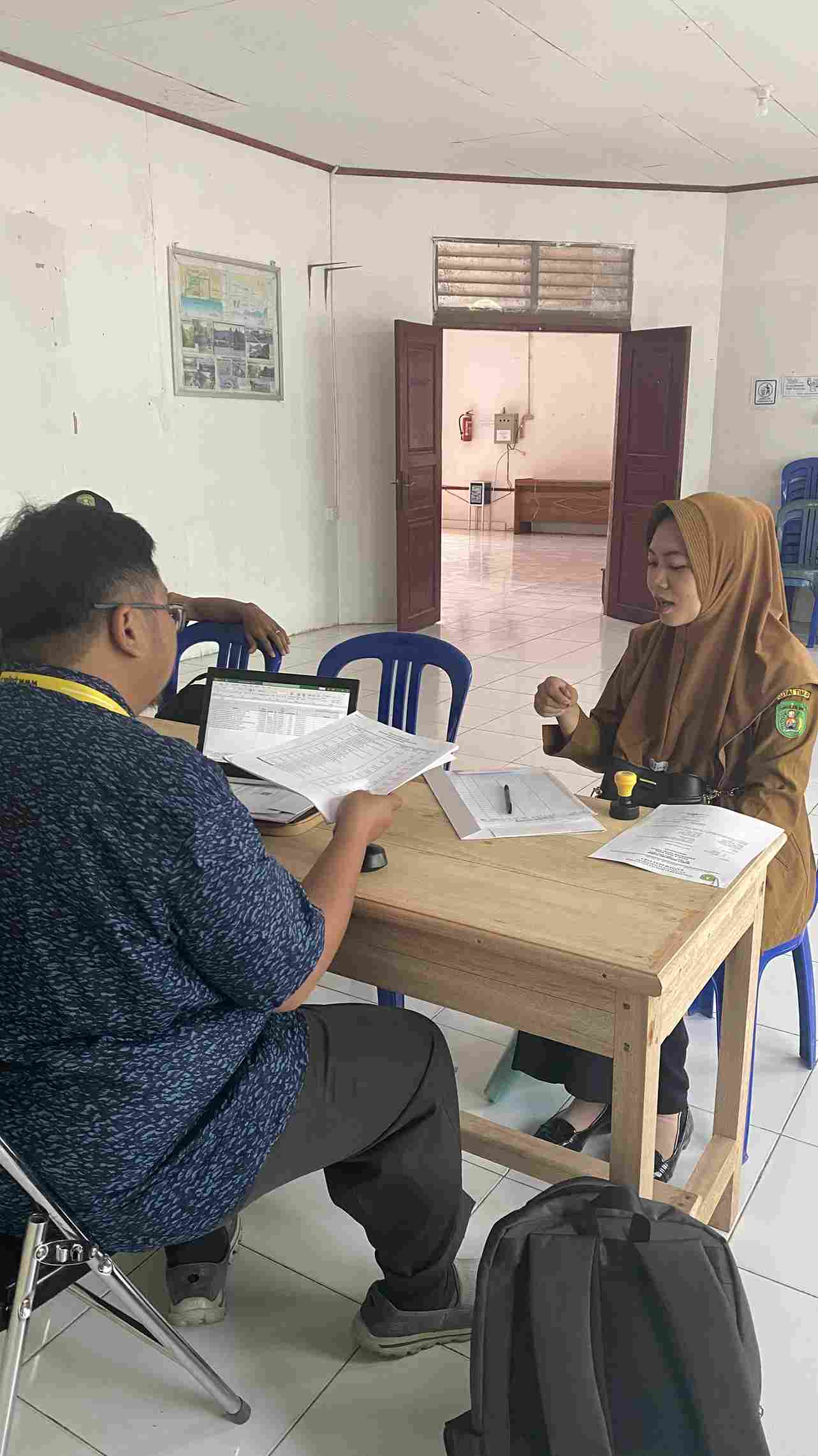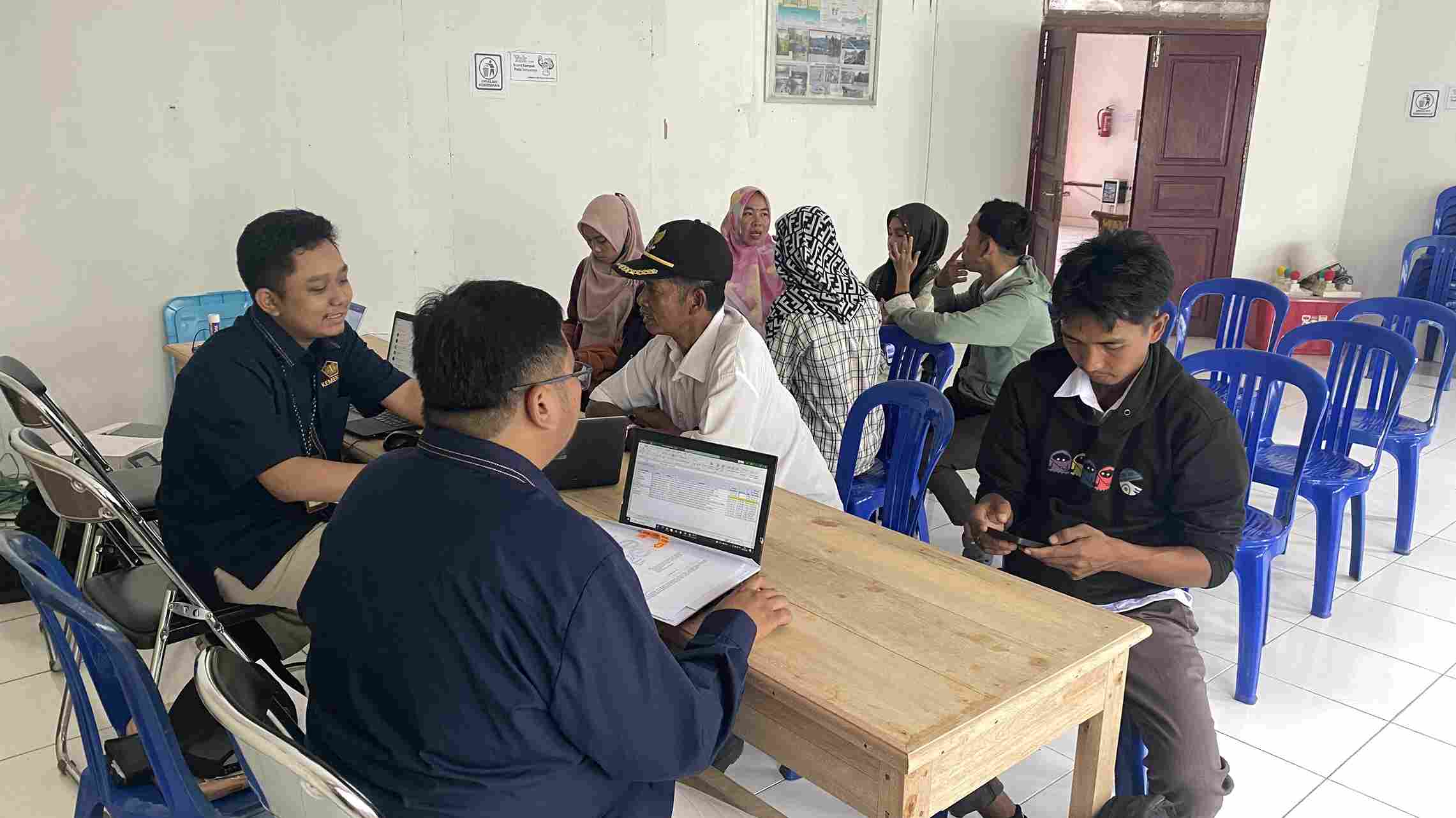 Account Representative KPP Pratama Bontang bertugas memberikan konsultasi tatap muka dengan kepada wajib pajak yang berkunjung. Salah satu wajib pajak yang hadir adalah perangkat Desa Benua Baru Ilir.