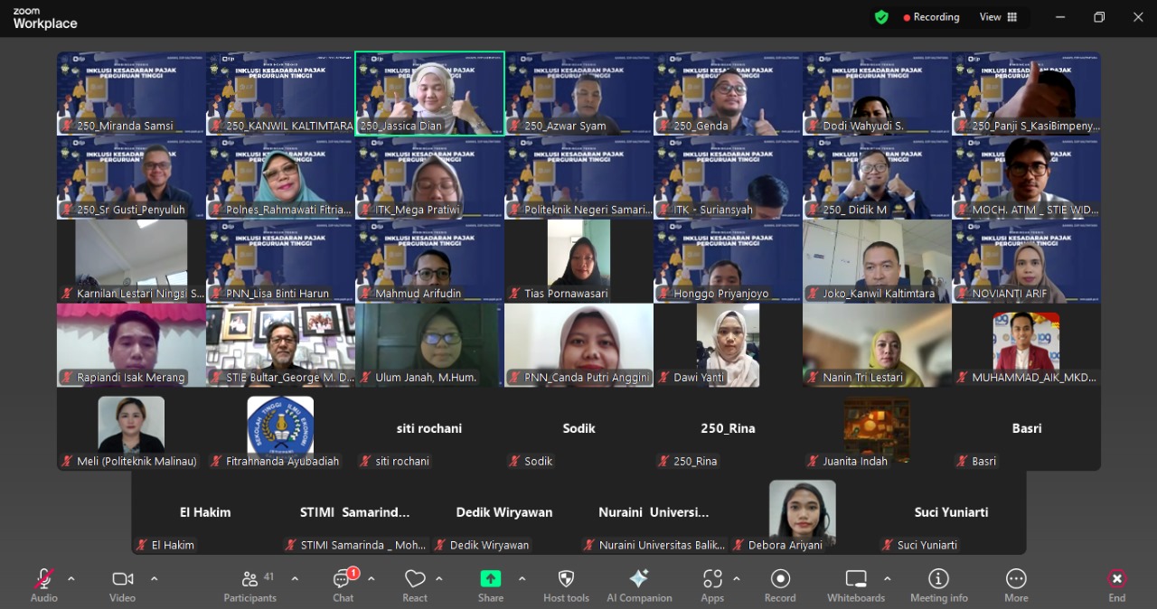 Kantor Wilayah Direktorat Jenderal Pajak Kalimantan Timur dan Utara (Kanwil DJP Kaltimtara) kembali mengadakan Bimbingan Teknis Penyusunan RPS Program Inklusi Kesadaran Pajak bagi Perguruan Tinggi di wilayah Provinsi Kalimantan Timur dan Kalimantan Utara secara daring melalui aplikasi Zoom Meeting. Kegiatan ini diikuti oleh Puluhan Dosen Perguruan Tinggi di wilayah Provinsi Kalimantan Timur dan Kalimantan Utara (Rabu, 9/7).