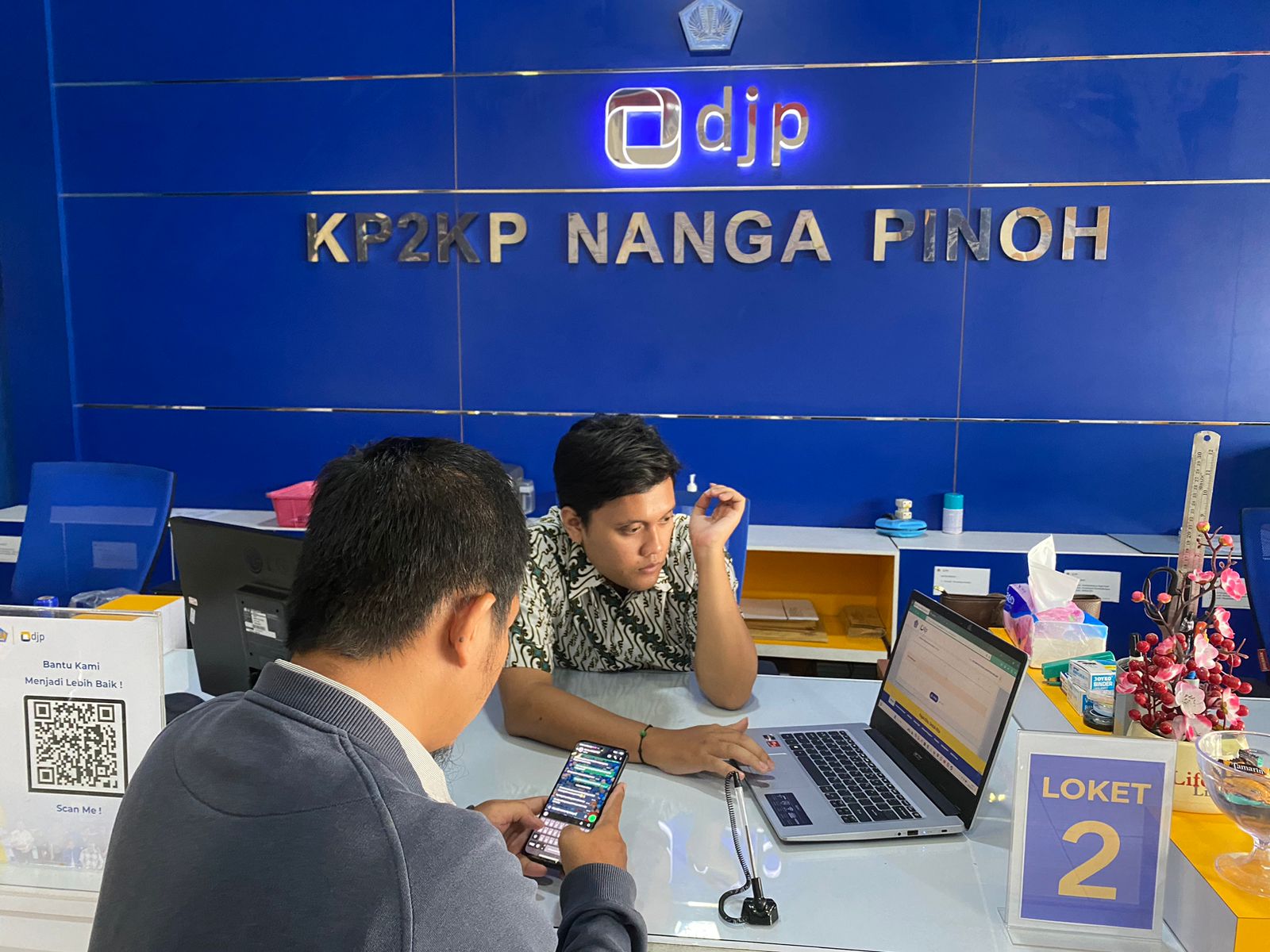 “Ini bukti lapornya Pak, sudah berhasil dilaporkan” ucap petugas pajak memberikan bukti penerimaan elektronik (BPE) kepada wajib pajak. Melalui konsultasi ini, Petugas Penyuluhan KP2KP Nanga Pinoh berharap semakin banyak wajib pajak yang taat dalam pelaporan e-Bupot dan tidak segan untuk langsung datang ke kantor pajak apabila menemukan suatu kendala dalam pelaporan pajak.