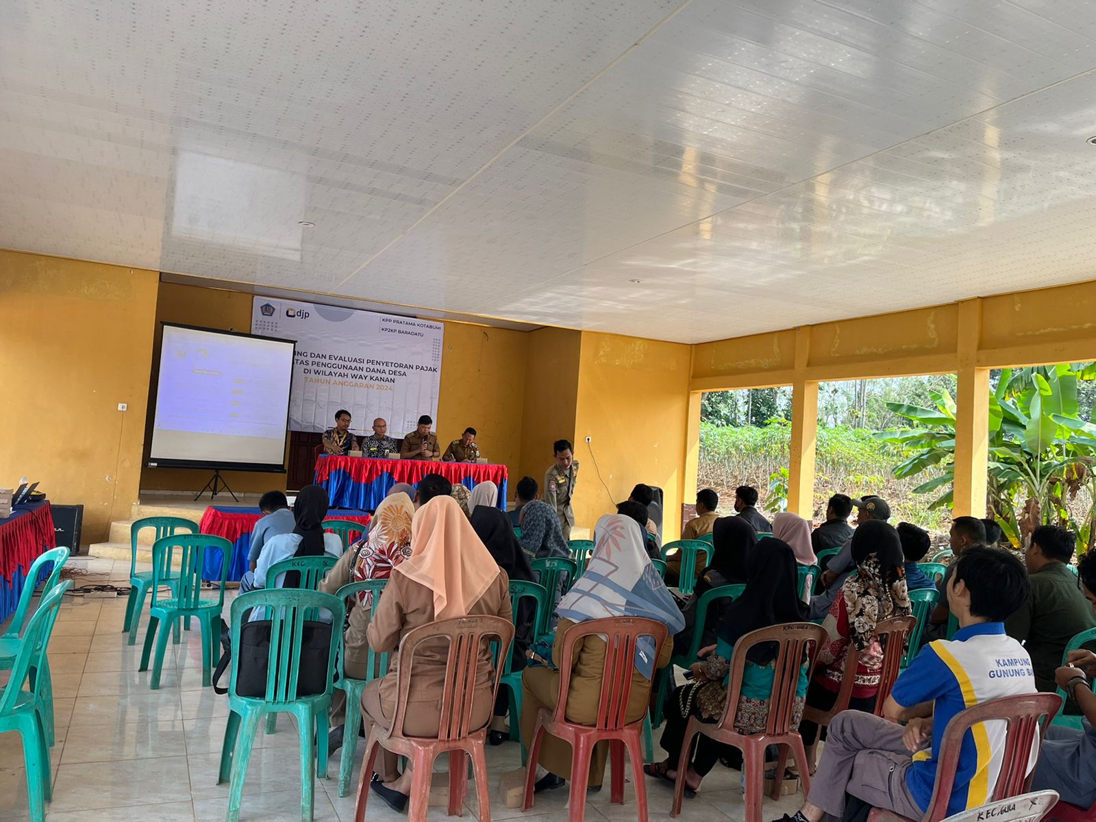 Kegiatan edukasi pajak ini dibuka langsung oleh Camat Gunung Labuhan Saydan dan dilanjutkan dengan sambutan oleh Kepala Seksi Pengawasan III KPP Pratama Kotabumi Deddy Indra Nurtjaja. Materi yang disampaikan berupa tata cara penghitungan, pemotongan/pemungutan, pembayaran, dan pelaporan Pajak Penghasilan (PPh) dan Pajak Pertambahan Nilai (PPN) atas pengelolaan dana desa.