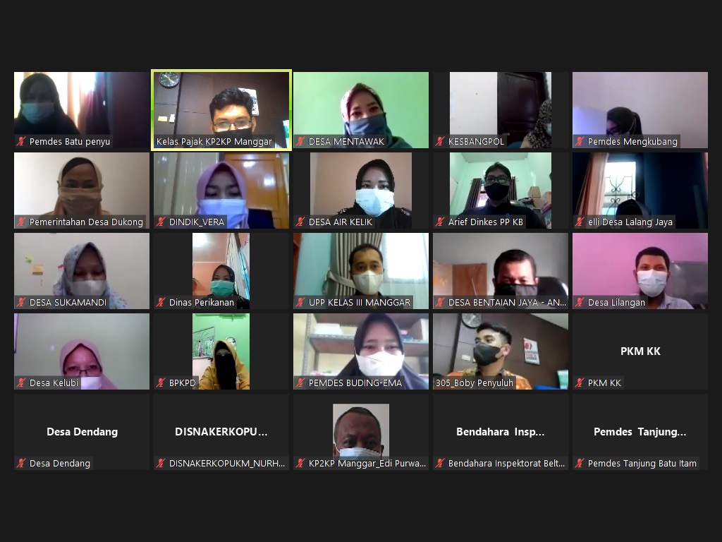 Kelas Pajak diselenggarakan secara daring melalui Aplikasi Zoom Meeting oleh KP2KP Manggar dengan narasumber dari Tim Fungsional Penyuluh KPP Pratama Tanjung Pandan dan berlangsung selama tiga jam.