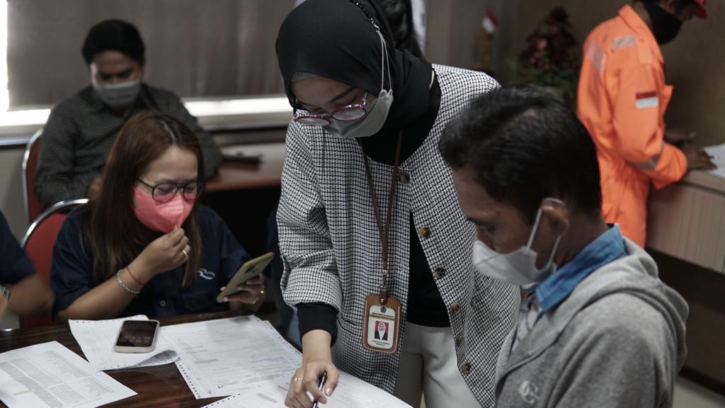 Karyawan PT Pelayaran Rusianto Bersaudara mengikuti asistensi pelaporan Surat Pemberitahuan (SPT) Tahunan Orang Pribadi secara e-Filing di Kota Samarinda (Kamis, 24/3). Kegiatan ini dipandu langsung oleh Tim Penyuluh KPP Pratama Samarinda Ilir di Ruangan Rapat Pelayaran Rusianto Bersaudara, Samarinda.