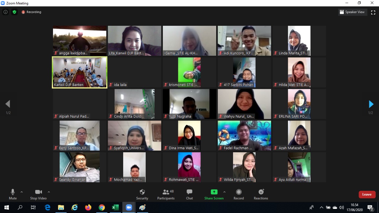 Kurang lebih 50 pengurus dan mahasiswa dari Tax Center yang berada di lingkungan Kantor Wilayah DJP Banten mengikuti bincang santai aturan perpajakan dan silahtuhrahmi idulfitri secara daring melalui media telekonferensi yang diselenggarakan di Kantor Wilayah DJP Banten (Rabu, 17/6)
