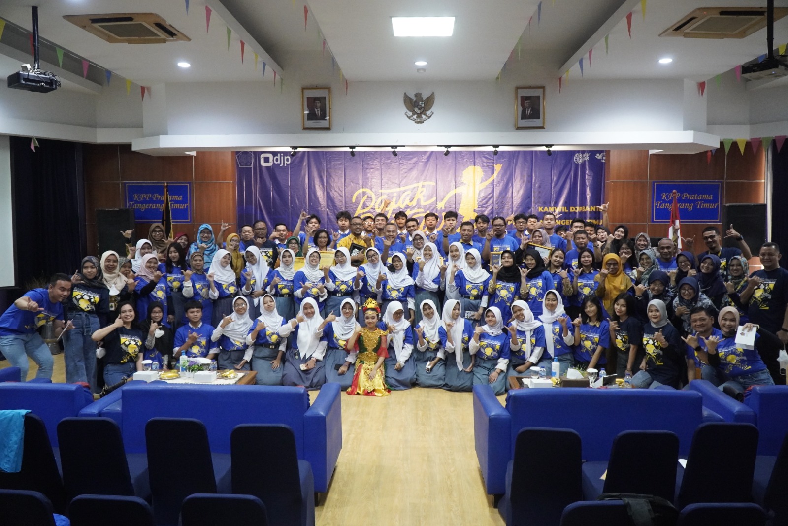 Kantor Wilayah Direktorat Jenderal Pajak (Kanwil DJP) Banten bersama Kantor Pelayanan Pajak (KPP) Pratama Tangerang Timur melaksanakan Kegiatan Pajak Bertutur tahun 2023 yang dilaksanakan secara luring dengan mengusung tema “Sadar Pajak Bukti Peduli Pada Negeri” dan tagline Pajak Bertutur “Sehari Mengenal Selamanya Bangga!” yang diikuti oleh 67 Siswa dari 5 Sekolah Menengah di Kota Tangerang di Aula KPP Pratama Tangerang Timur, Komplek Perkantoran, Jalan Satria - Sudirman, RT.002/RW.001, Sukaasih, Kecamatan Tangerang, Kota Tangerang, Banten (Selasa, 8/8).