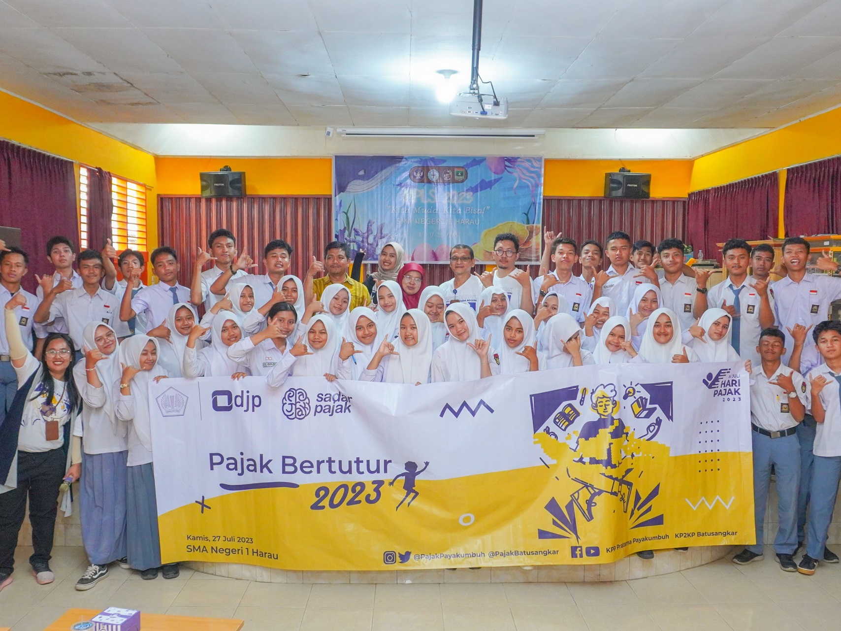 Kantor Pelayanan Pajak (KPP) Pratama Payakumbuh mengadakan Pajak Bertutur Tahun 2023 di SMA Negeri 1 Harau, Jalan Raya Negara No.Km.7, Koto Tuo, Kec. Harau, Kabupaten Lima Puluh Kota, Sumatera Barat (Kamis, 27/7).