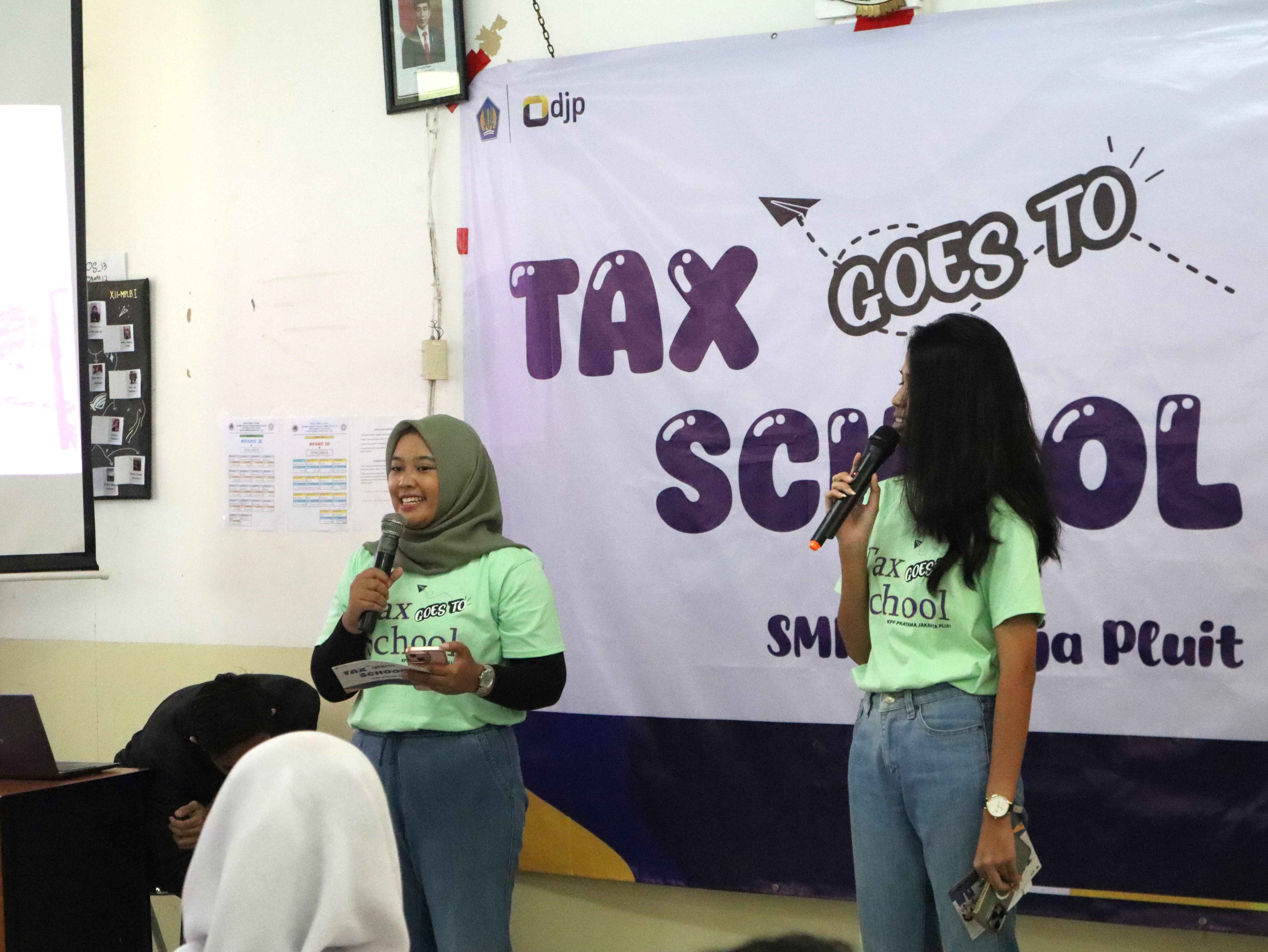 Melalui tax goes to schooll, para peserta mendapat pengenalan materi perpajakan yang disampaikan Endra Catur dan Jimmy AP, Penyuluh KPP Pratama Jakarta Pluit. Selain itu, peserta juga mengikuti berbagai quiz dan permainan individu atau kelompok.