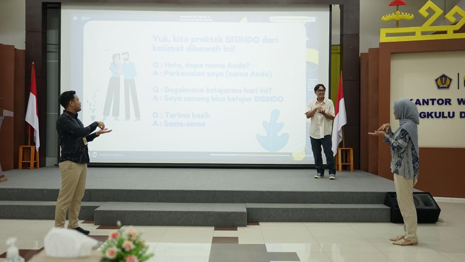 Kantor Wilayah (Kanwil) Direktorat Jenderal Pajak (DJP) Bengkulu dan Lampung, bekerja sama dengan Gerkatin Lampung, menggelar pelatihan Bahasa Isyarat Indonesia (Bisindo) di Aula Raflesiger Kanwil DJP Bengkulu dan Lampung (Jumat, 1/3). Kegiatan ini dihadiri oleh Kepala Seksi Pelayanan, Perwakilan Fungsional Penyuluh, dan Pelaksana Seksi Pelayanan dari KPP dan KP2KP di Wilayah Bengkulu dan Lampung. Pelatihan ini bertujuan meningkatkan aksesibilitas layanan perpajakan bagi masyarakat tuna rungu.