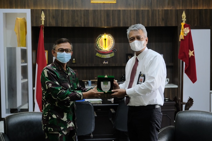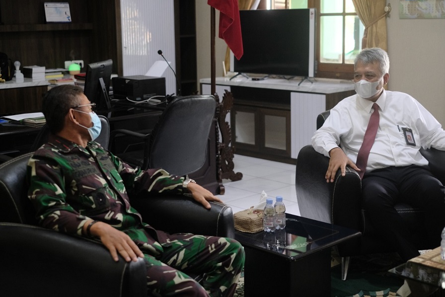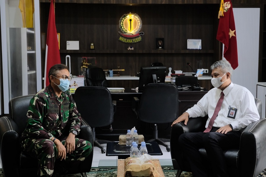 Kepala Kantor Wilayah (Kanwil) DJP Banten Dionysius Lucas Hendrawan beserta Kepala Kantor Pelayanan Pajak (KPP) Pratama Serang Timur dan Kepala KPP Pratama Pandeglang melakukan pertemuan dengan Komandan Komando Resor Militer (Danrem) 064 Maulana Yusuf Brigjen Gumuruh Winardjatmiko di ruang kerja Danrem 064 Maulana Yusuf, Serang (Senin, 29/3).
