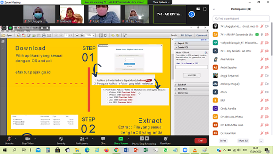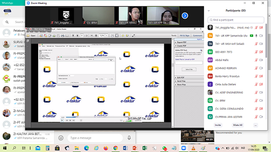 Priska Tinneta Astriani, Kartika Aan Wibisono, dan Arief Setiadi, Account Representative KPP Pratama Samarinda Ulu menjadi pemateri dalam webinar kali ini. Peserta tidak hanya mendapatkan pemaparan materi saja, melainkan juga petunjuk penggunaan aplikasi e-Faktur 3.0. Webinar dibagi menjadi dua sesi, yakni sesi pagi dan siang di mana pada sesi pagi mulai pukul 10.00 WITA dan sesi siang mulai pukul 14.00 WITA.