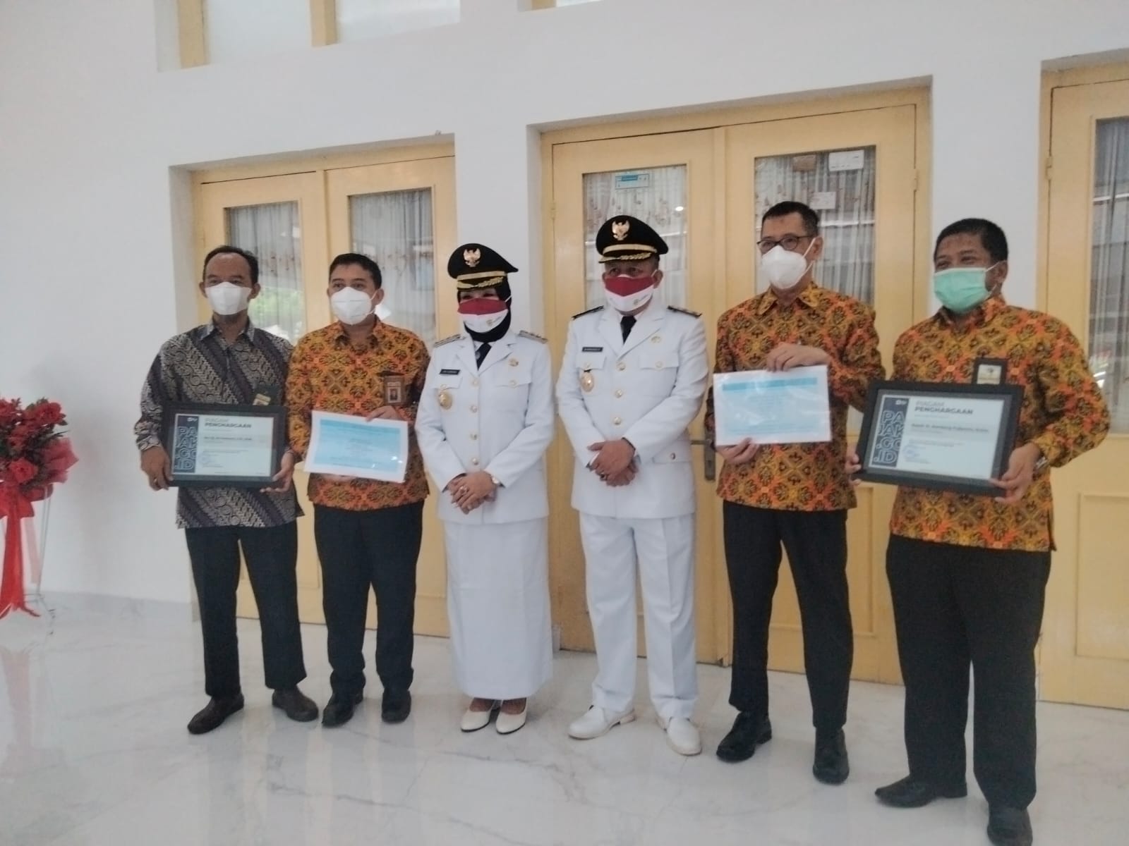 Kepala Kantor Pelayanan Pajak (KPP) Pratama Blora, Mulyanto Budi Santoso memberikan penghargaan kepada Bupati Grobogan karena telah melaporkan Surat Pemberitahuan (SPT) Tahunan Pajak Penghasilan (PPh) Orang Pribadi Tahun Pajak 2021 di Kantor Bupati Grobogan (Jumat, 4/3). Penghargaan juga diberikan kepada Wakil Bupati Grobogan, Bambang Pujiyanto yang juga telah melaporkan SPT Tahunan.