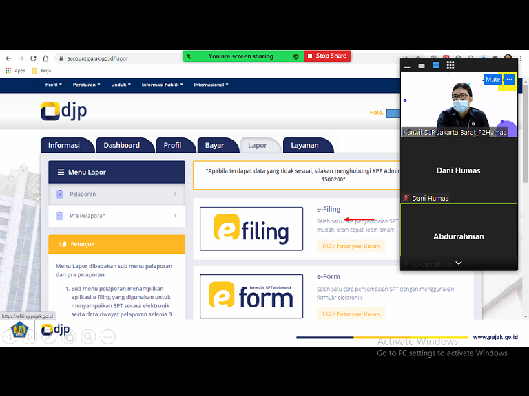 Mahasiswa yang ikut dalam Program Relawan Pajak kerja sama Tax Center Universitas Esa Unggul dengan Kantor Wilayah Direktorat Jenderal Pajak Jakarta Barat mengikuti Pelatihan Relawan Pajak Tahun 2022 yang dilaksanakan secara daring melalui media zoom meeting di Ruang Rapat Lantai 5 Kanwil DJP Jakarta Barat, Jalan Tomang Raya, Jakarta (Kamis, 24/2).