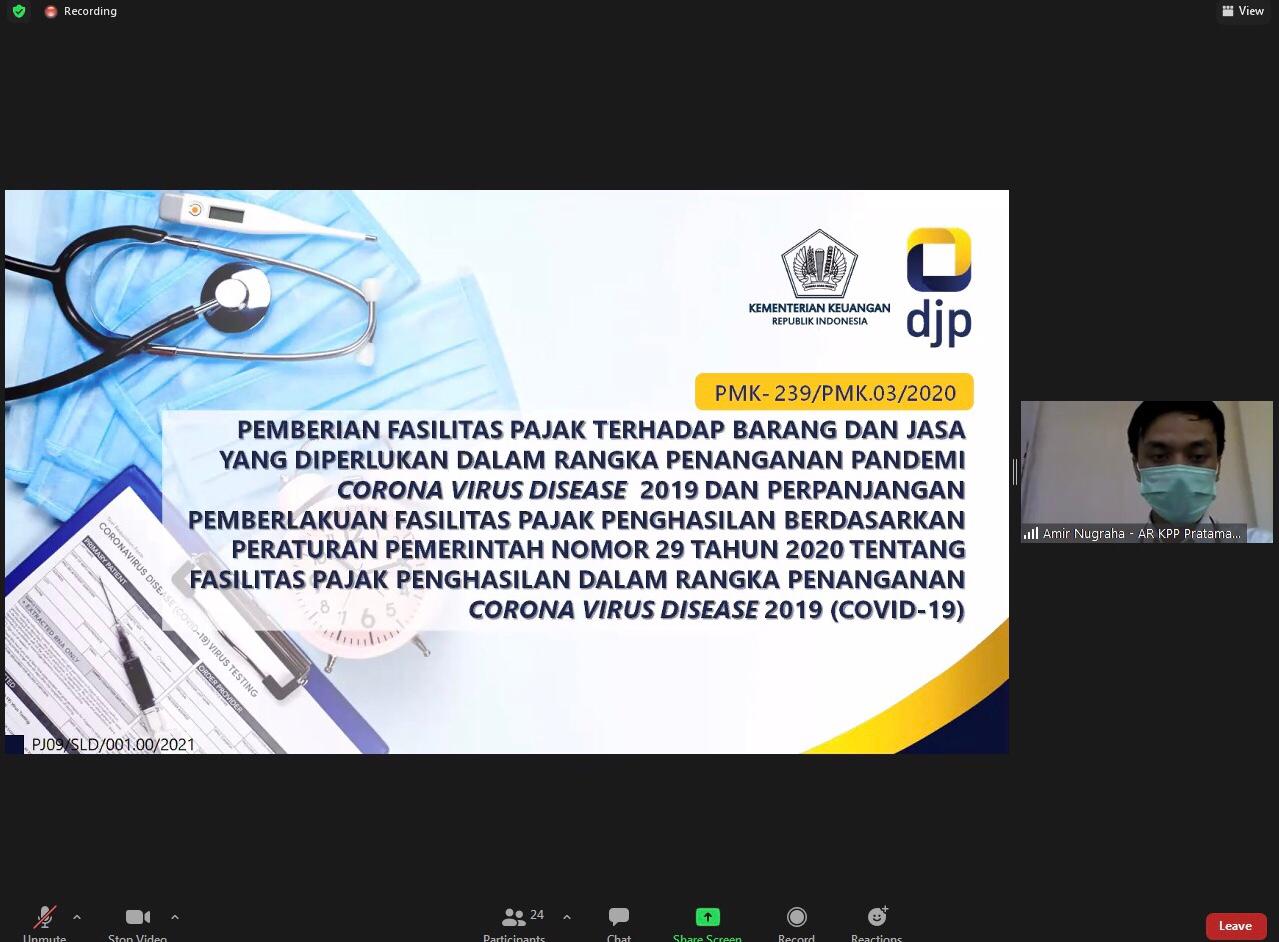 Dalam dialog insentif perpajakan tersebut narasumber memaparkan dua aturan perpajakan yaitu PMK-9/PMK.03/2021 tentang Insentif Pajak untuk Wajib Pajak Terdampak Pandemi Covid-19 dan PMK-239/PMK.03/2021 tentang Pemberian Fasilitas Pajak terhadap Barang dan Jasa yang Diperlukan dalam rangka Penanganan Pandemi Covid-19 dan Perpanjangan Pemberlakuan Fasilitas PPh Berdasarkan PP Nomor 29 Tahun 2020. Selain pemaparan materi peserta juga diberikan kesempatan untuk mengajukan pertanyaan atau diskusi terkait aturan tersebut. (RAP)
