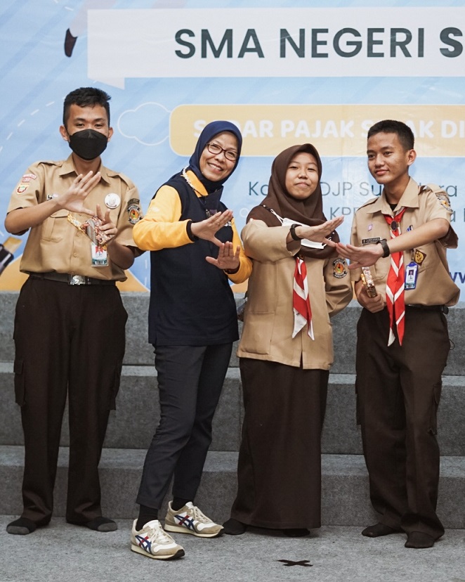 "Salah satu manfaat pajak yang kita rasakan saat ini adalah beasiswa pendidikan baik berupa bebas SPP dan fasilitas pendidikan yang SMAN Sumsel rasakan sekarang," jelas Iswan.