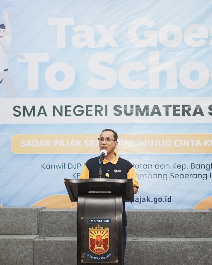 Kantor Wilayah Direktorat Jenderal Pajak Sumatera Selatan dan Kepulauan Bangka Belitung (Kanwil DJP Sumsel dan Kep. Babel) berkolaborasi dengan Kantor Pelayanan Pajak (KPP) Pratama Palembang Seberang Ulu mengadakan Tax Goes to School (TGTS) di Ruang Amphitheater, Sekolah Menengah Atas Negeri (SMAN) Sumatera Selatan, Jakabaring, Sumatera Selatan (Jumat, 4/11).