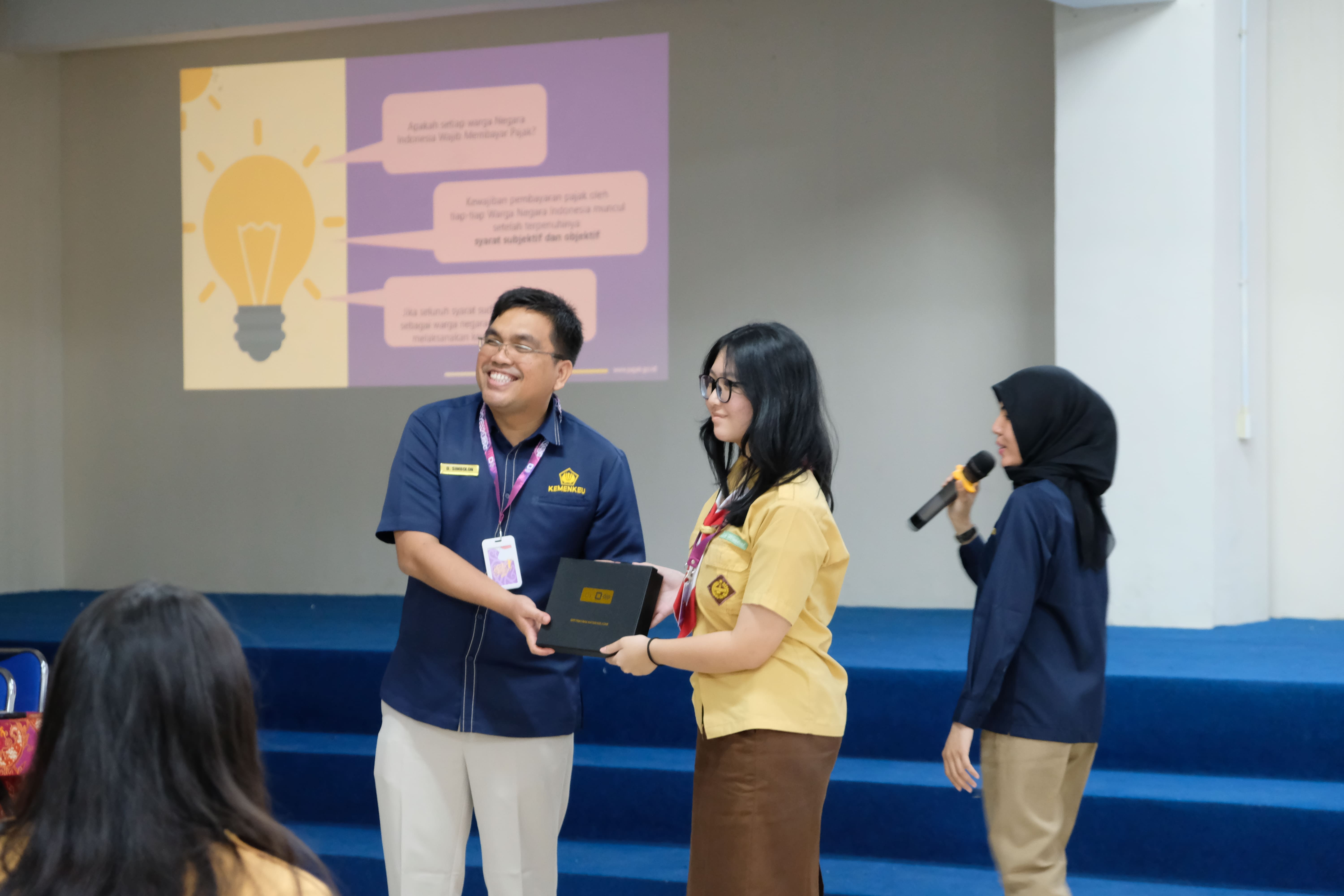 Para peserta mengikuti kegiatan dengan cara berlomba-lomba dalam menjawab pertanyaan baik yang dilemparkan oleh pemateri maupun memberikan umpan balik terhadap materi yang disampaikan. Selanjutnya, acara gimdiikuti dengan meriah oleh para siswa yang diakhiri dengan pemberian hadiah dan cendera mata dari KPP Pratama Batam Selatan.