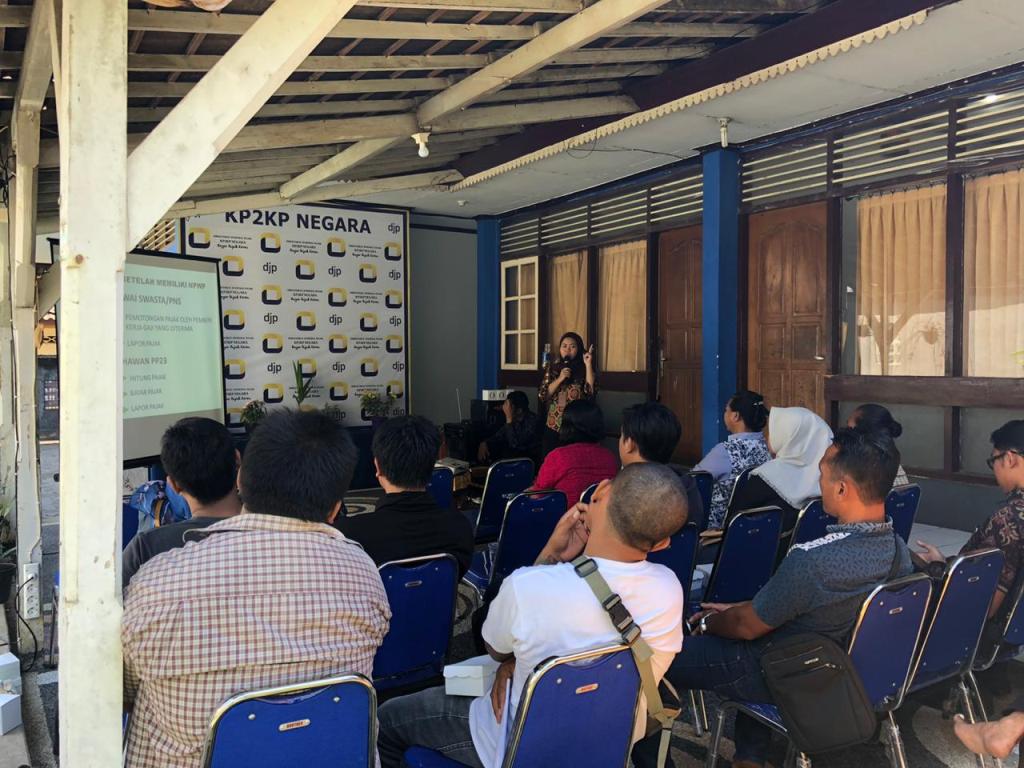 Kantor Pelayanan, Penyuluhan dan Konsultasi Perpajakan (KP2KP) Negara kembali melaksanakan kegiatan edukasi perpajakan bagi wajib pajak orang pribadi yang bertempat di Taman Belakang KP2KP Negara (Selasa, 29/10). Kegiatan ini dihadiri oleh wajib pajak orang pribadi baru di Kabupaten Jembrana.