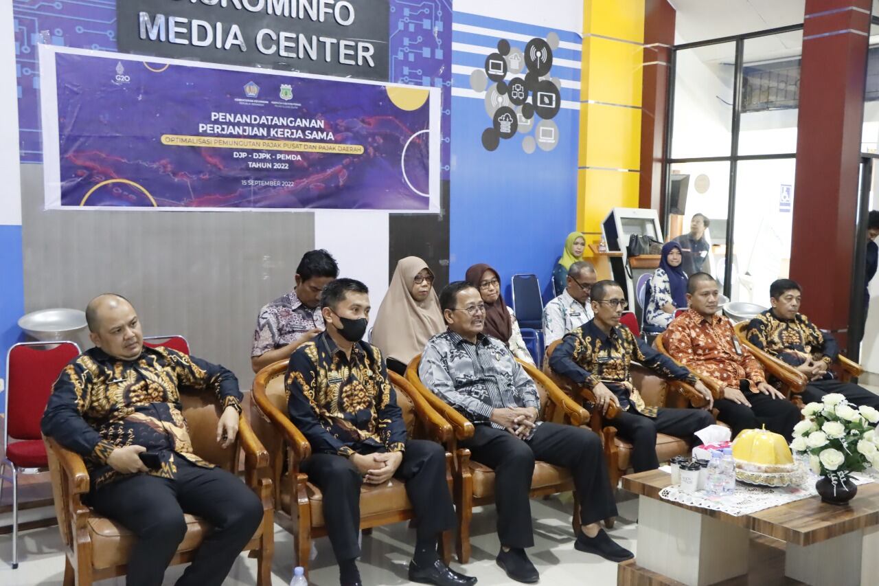 Kepala Kantor Pelayanan, Penyuluhan, dan Konsultasi Perpajakan (KP2KP) Pinrang turut hadir pada acara seremoni penandatanganan Perjanjian Kerja Sama (PKS) antara tiga pihak (Kamis, 15/9). Seremoni yang digelar secara hybrid tersebut dilaksanakan di ruang Media Center milik Dinas Komunikasi, Informatika, dan Persandian (Diskominfo) Pinrang, Kabupaten Pinrang.