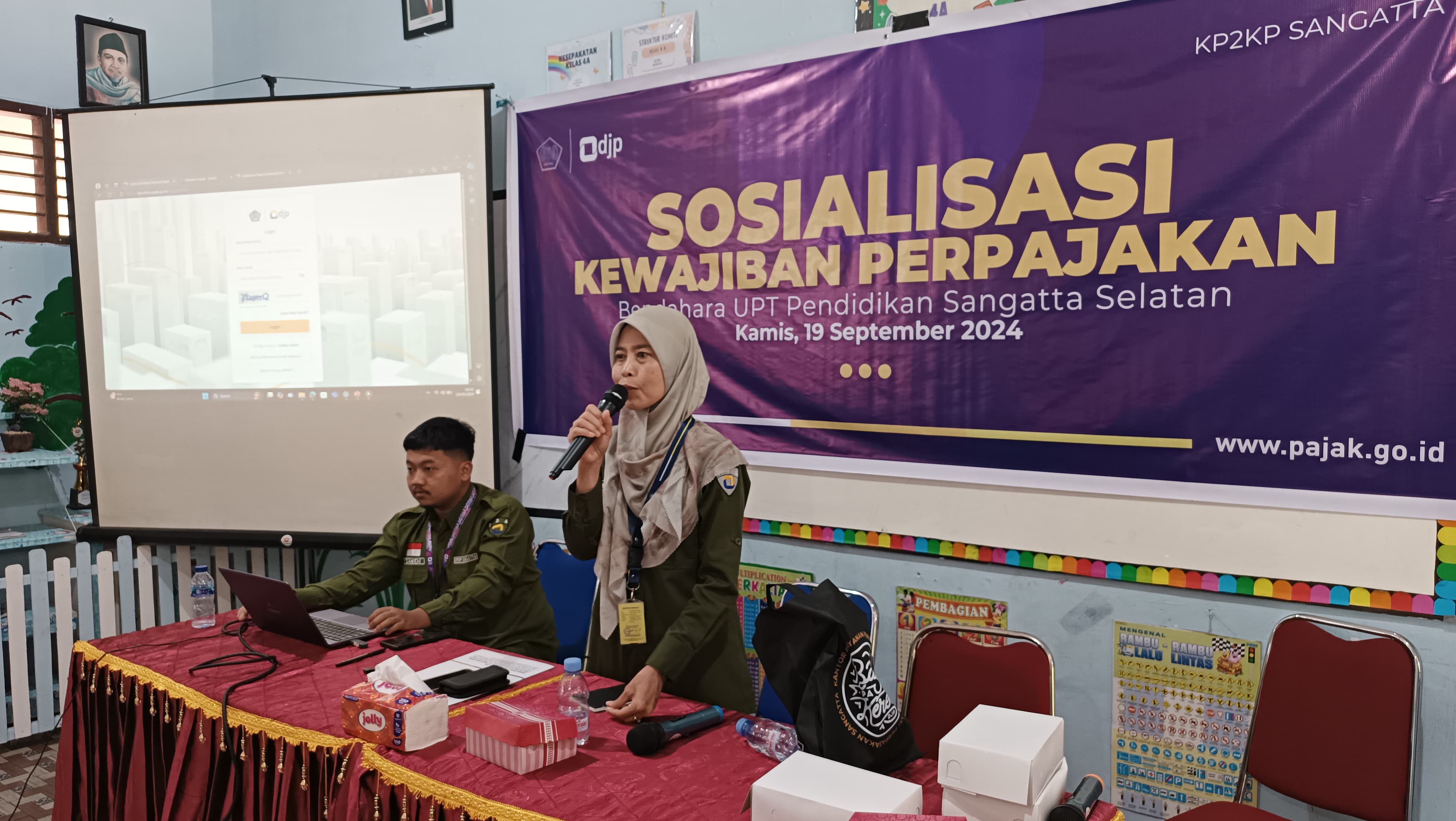Kantor Pelayanan, Penyuluhan, dan Konsultasi Perpajakan (KP2KP) Sangatta menyambangi para Bendaraha UPT Dinas Pendidikan di wilayah Kecamatan Sangatta Selatan dalam rangka sosialisasi kewajiban perpajakan bagi bendaharawan dinas pemerintahan di Kab. Kutai Timur (Kamis, 19/9)
