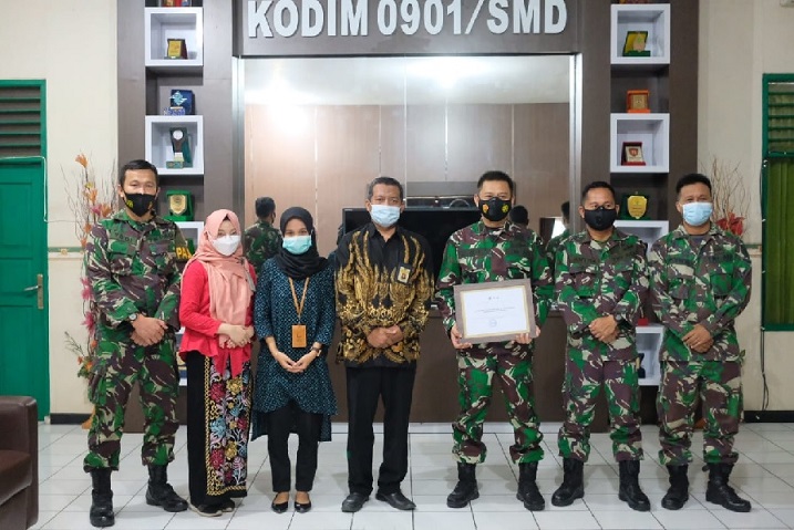 Kantor Pelayanan Pajak (KPP) Pratama Samarinda Ilir melakukan kunjungan dalam rangka penyerahan piagam penghargaan pelaporan Surat Pemberitahuan (SPT) Tahunan ke Komando Distrik Militer (Kodim) 0901 Samarinda Jalan Gajah Mada No 13, Kota Samarinda Kota (Selasa, 27/4).