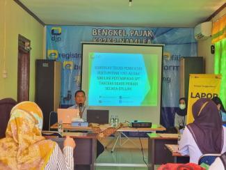 Bendahara Organisasi Perangkat Daerah (OPD) Kabupaten Buru mengunjungi Kantor Pelayanan, Penyuluhan, dan Konsultasi Perpajakan (KP2KP) Namlea untuk mengikuti kegiatan sosialisasi perpajakan terkait dengan Pembuatan Bukti Potong 1721 A2 dan simulasi penyampaian SPT Tahunan secara efiling di Aula KP2KP Namlea, Kabupaten Buru, Maluku (Rabu, 16/2).