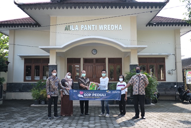 Kantor Wilayah Direktorat Jenderal Pajak (Kanwil DJP) Jawa Tengah II memberikan bantuan sosial kepada para penghuni panti jompo Wreda Dharma Bakti di Surakarta (Jumat, 9/7). Kegiatan ini dilaksanakan dalam rangka memperingati Hari Pajak yang akan jatuh pada tanggal 14 Juli 2021.