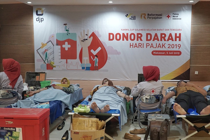 Kanwil DJP Sulawesi Selatan, Barat, dan Tenggara (Sulselbartra) melangsungkan acara Bakti Sosial Donor Darah yang menjadi rangkaian kegiatan dalam rangka Peringatan Hari Pajak Nasional (Selasa, 9/7). Kegiatan ini diadakan di aula Kanwil DJP Sulselbartra dengan diikuti pegawai perwakilan dari Kantor Pelayanan Pajak di Kota Makassar serta kantor unit Kementerian Keuangan di lingkungan GKN Makassar sebagai peserta.