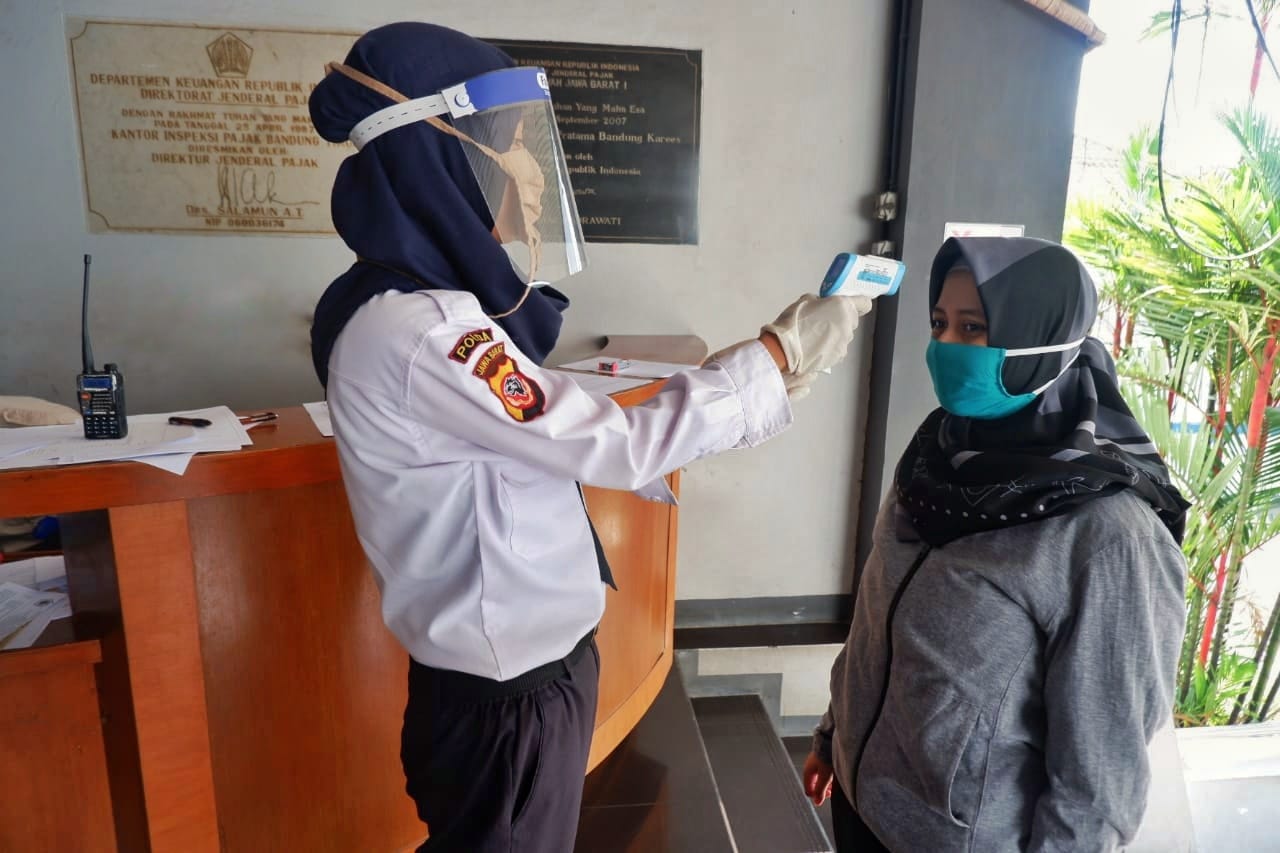 Wajib pajak yang akan memasuki KPP akan dicek nomor antrean terlebih dahulu. Nomor antrian dapat diperoleh wajib pajak satu hari sebelumnya. Selain itu, wajib pajak yang hendak menyampaikan keperluannya di Tempat pelayanan Terpadu (TPT) diwajibkan untuk melakukan cuci tangan, pengecekan suhu tubuh, lalu diberikan handsanitizer terlebih dahulu. Petugas pajak kemudian akan menyambut wajib pajak tersebut dengan perlengkapan berupa sarung tangan, face shield, dan masker. (AK)