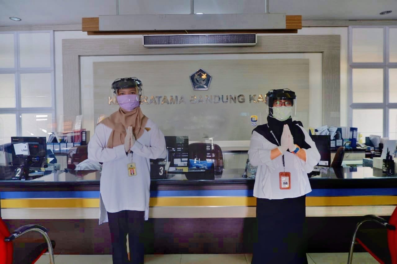 KPP Pratama Bandung Karees mulai membuka kembali layanan tatap muka kepada wajib pajak (Senin, 15/6). Pelayanan dilakukan dengan tetap memperhatikan protokol kesehatan, seperti wajib masker, sarana mencuci tangan, pengecekan suhu tubuh, serta pengaturan kursi untuk tetap dalam jarak aman.