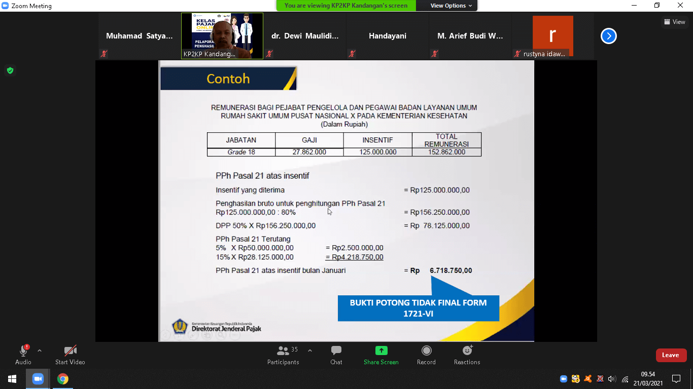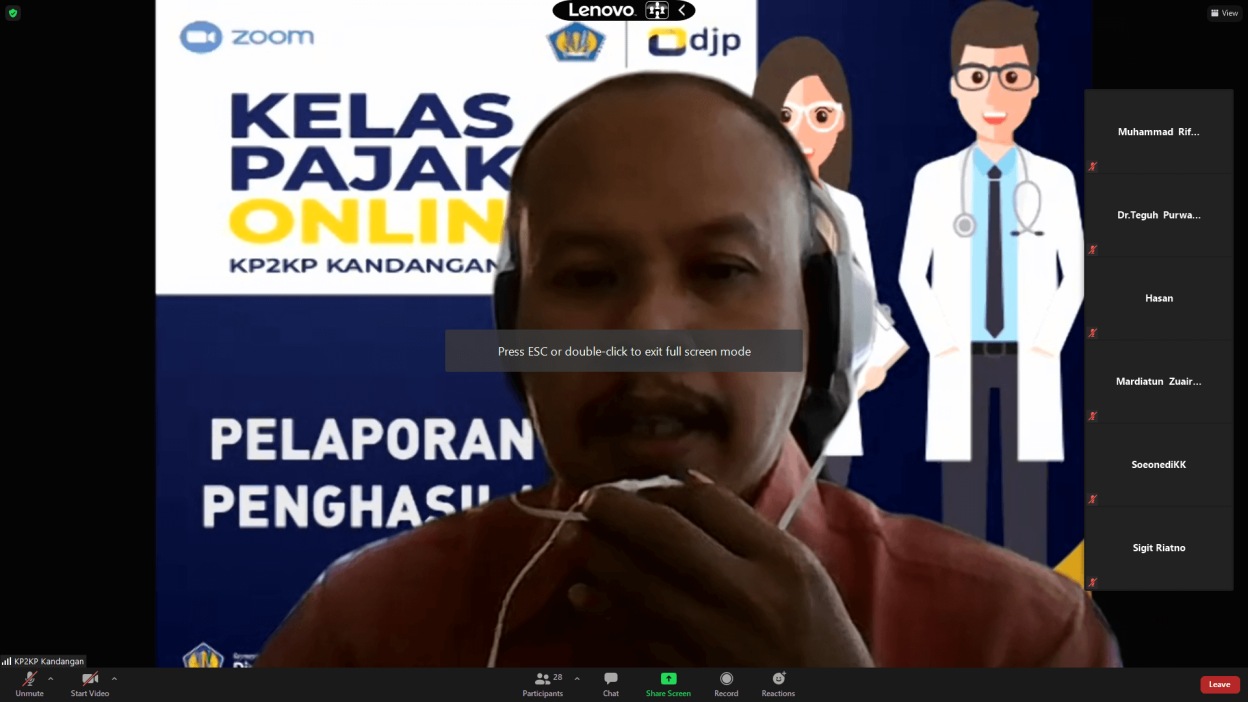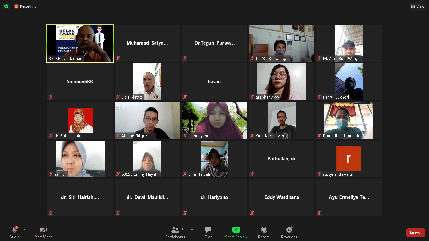 Kerjasama Ikatan Dokter Indonesia (IDI) Kalimantan Selatan cabang Kabupaten Hulu Sungai Selatan dan Kantor Pelayanan, Penyuluhan, dan Konsultasi Perpajakan (KP2KP) Kandangan menghasilkan kegiatan edukasi pelaporan SPT Tahunan khusus Dokter secara daring dari Kandangan (Minggu, 21/3).