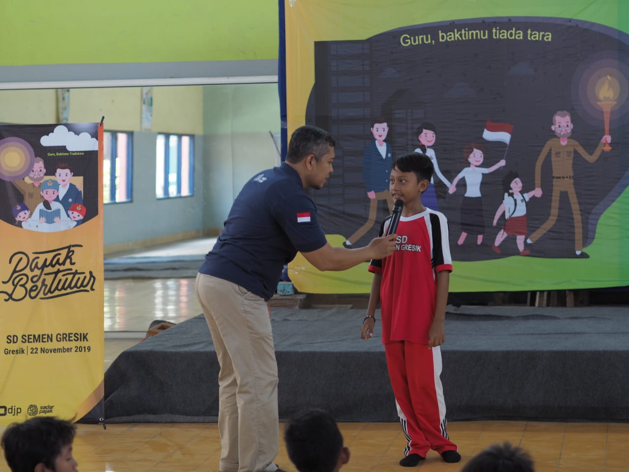 KPP Pratama Gresik Utara menggelar Pajak Bertutur di tiga jenjang pendidikan, salah satunya yaitu SD Semen Gresik jalan Awikoen, Kab. Gresik (Jumat, 22/11). Acara ini diikuti oleh 58 peserta yang terdiri dari siswa-siswi kelas V dan VI. Mereka menyimak materi dan mengikuti beragam permainan dengan sangat bersemangat.