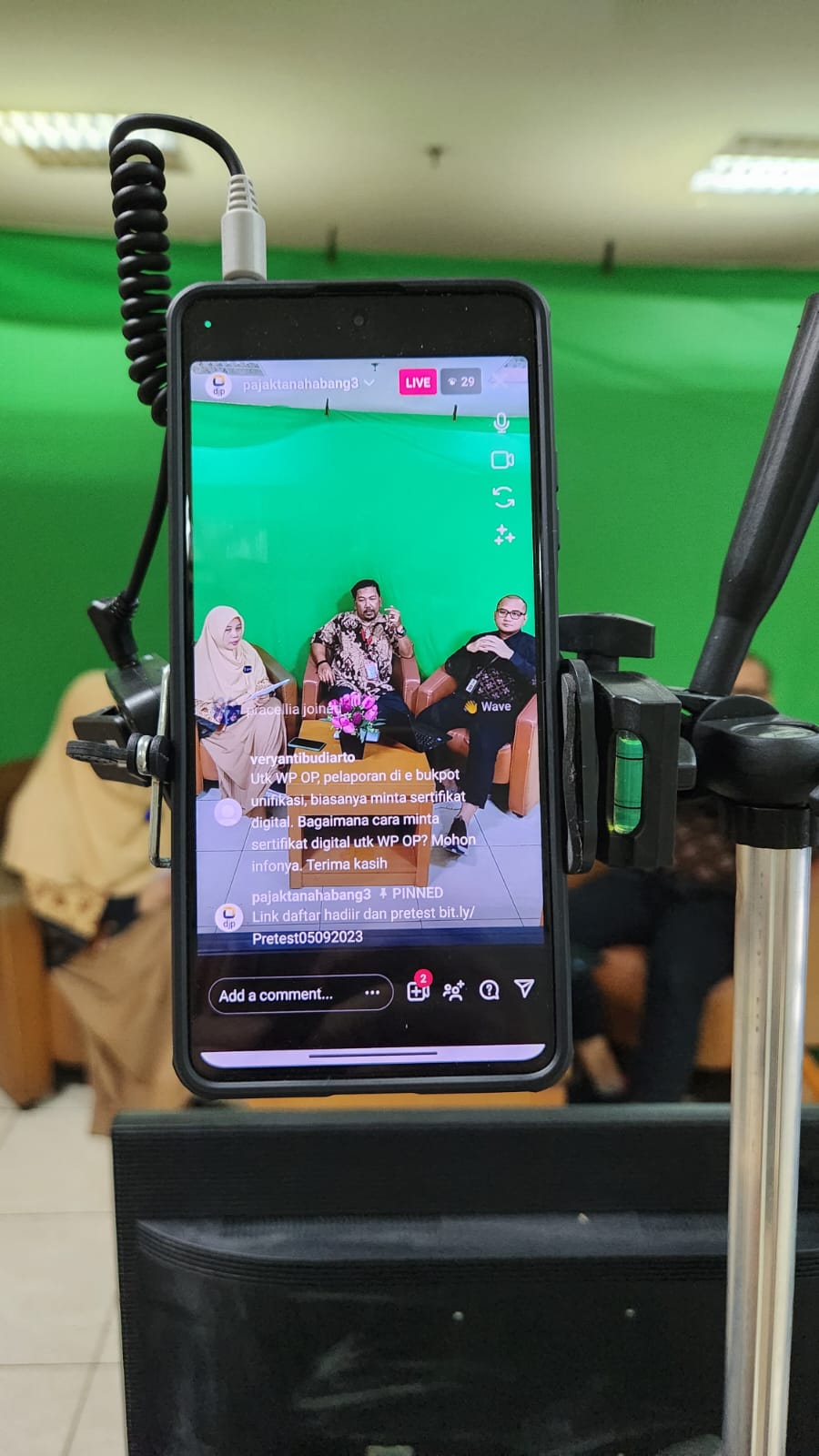 KPP Pratama Jakarta Tanah Abang Tiga (KPP TA3) memberikan edukasi perpajakan melalui media sosial Instagram yang disiarkan secara langsung di KPP TA3, Tanah Abang, Jakarta Pusat (Kamis, 7/9).