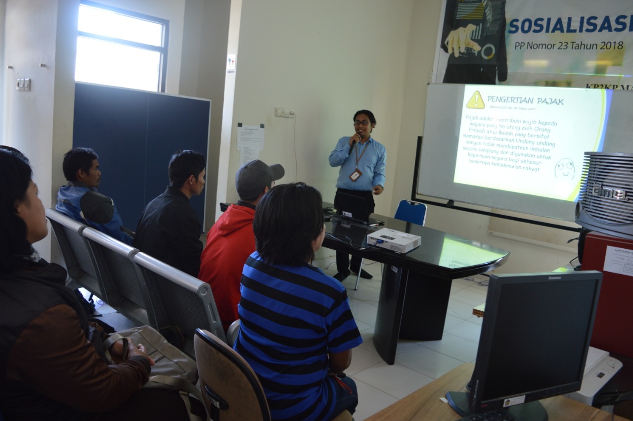 Kantor Pelayanan, Penyuluhan dan Konsultasi Perpajakan (KP2KP) Mamasa memberikan Edukasi Perpajakan langsung ke wajib pajak di wilayah kerjanya melalui Kelas Pajak (Rabu, 18/9). Kegiatan ini dilaksanakan oleh pegawai KP2KP Mamasa dan berlangsung di aula KP2KP Mamasa.